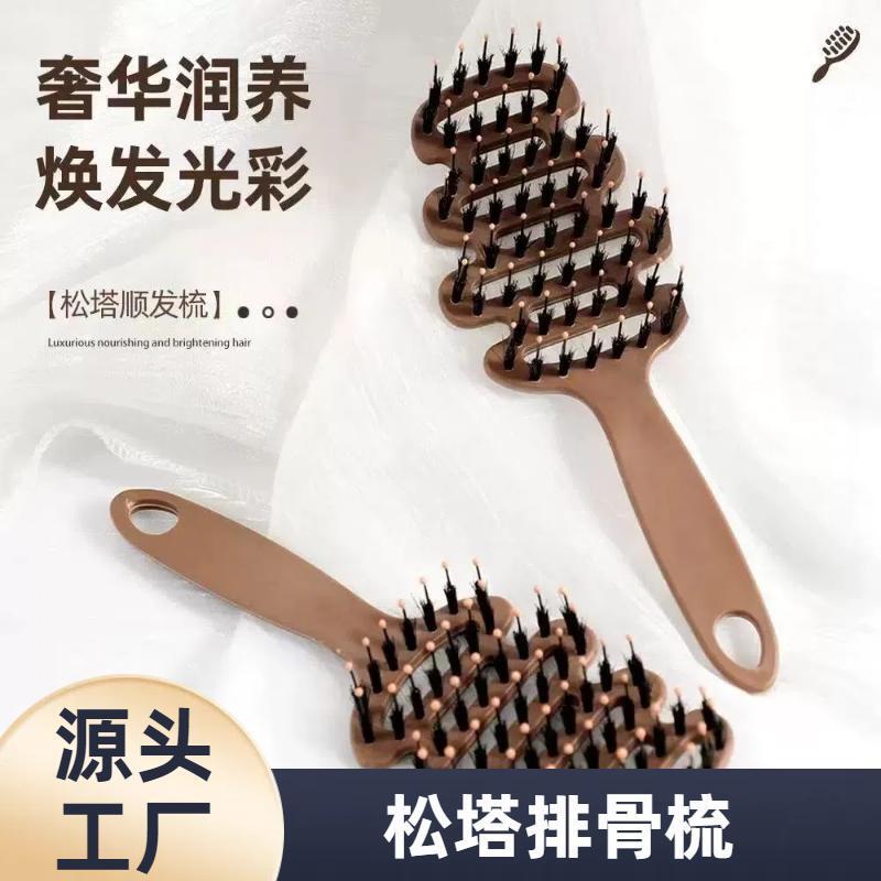 松塔猪鬃梳发顶蓬松神器按摩顺发护发排骨梳批发