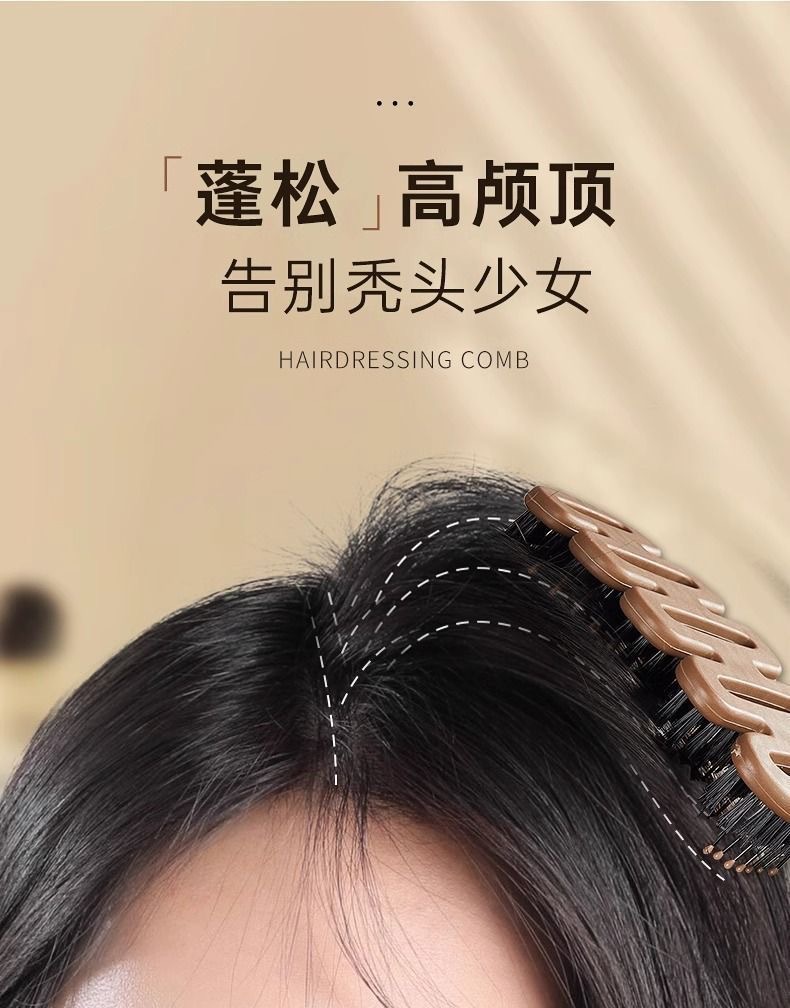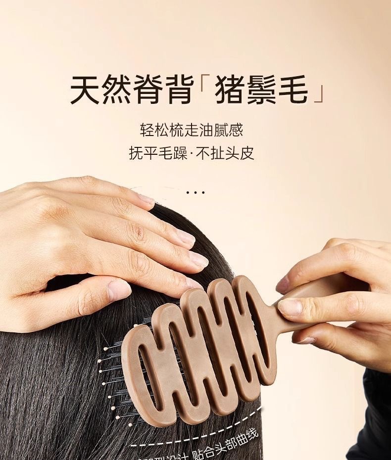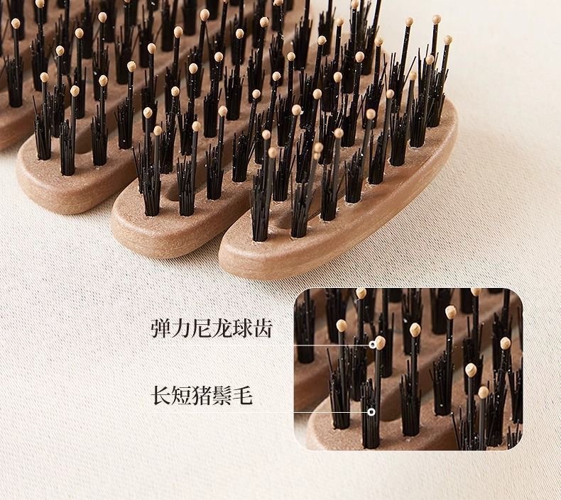 松塔猪鬃毛梳子蓬松颅顶排骨梳子按摩头部经络疏通女士用防静电