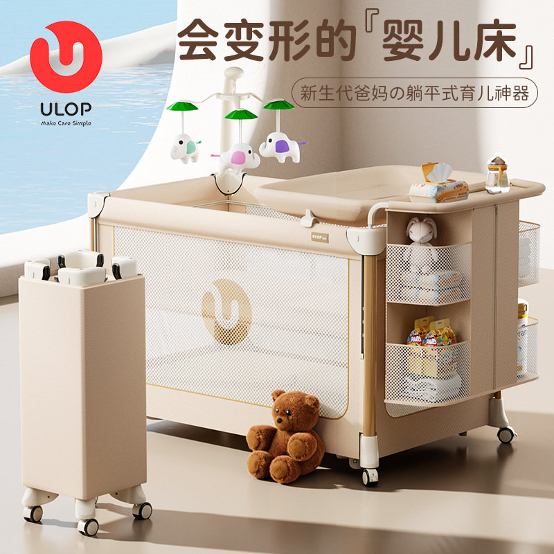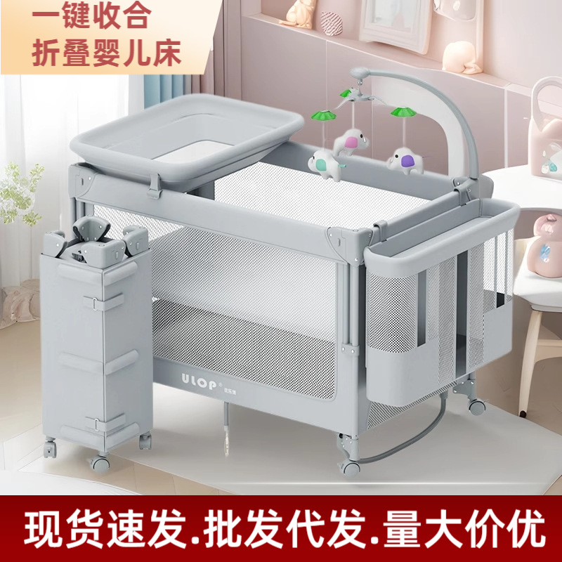 ウロップ优楽博ベビーベッドオムツ台付きスプライスベッド折りたたみ新生児ベッドベビー用品赤ちゃんシェーカーベッド