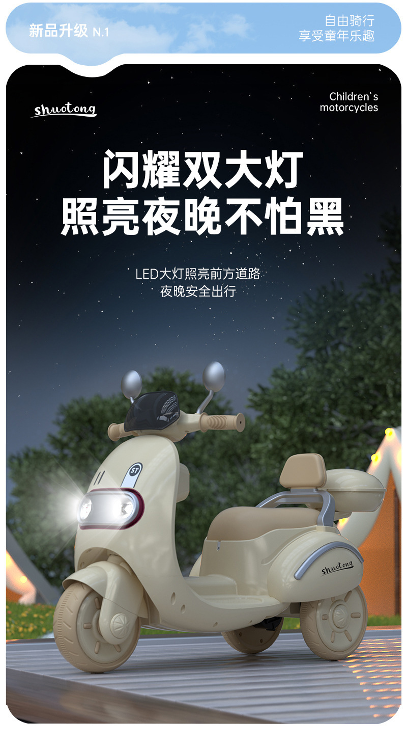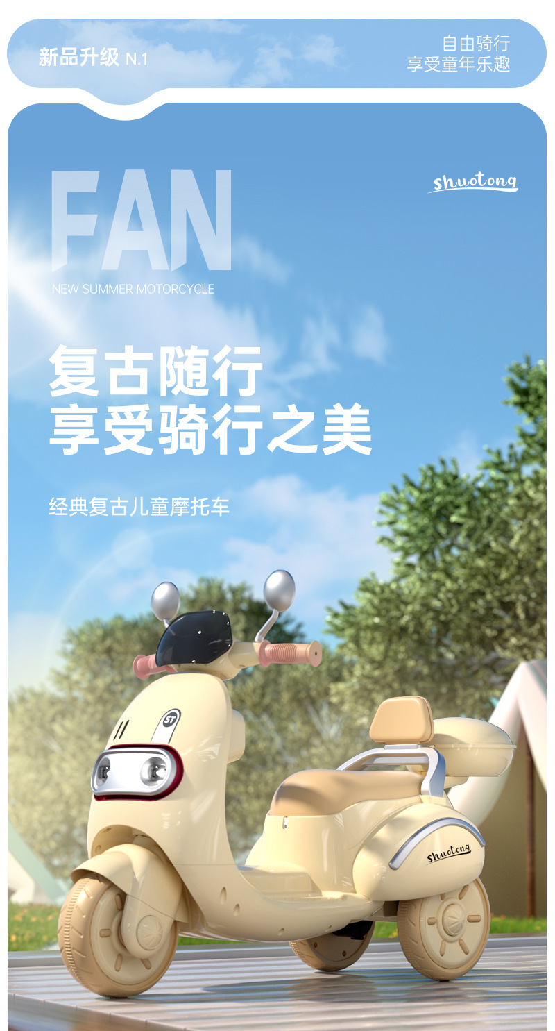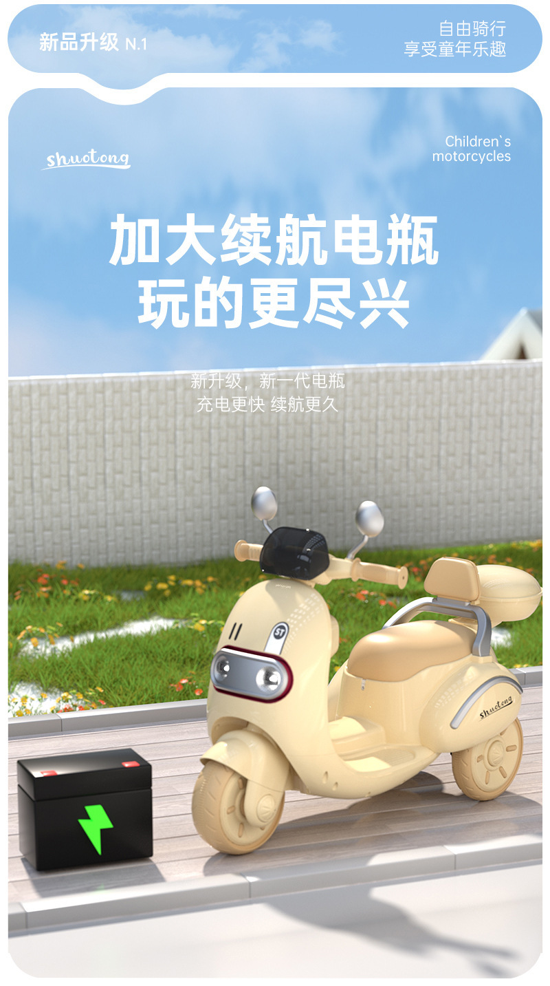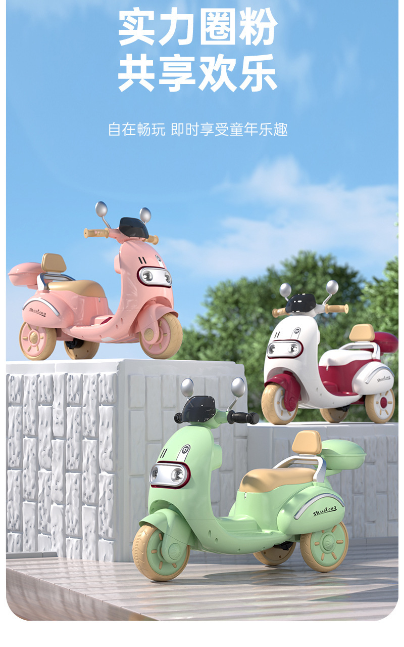 新款儿童电动摩托车可坐大人男女孩宝宝童车可充电木兰车