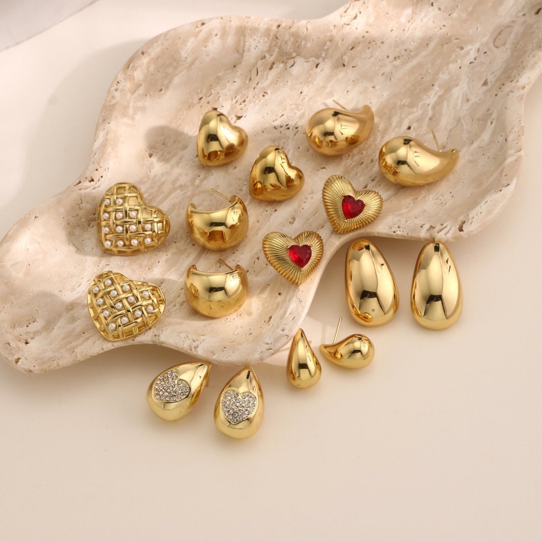 Amazonの人気のステンレス鋼のハイエンド中空ウォータードロップイヤリング、色あせしない18Kゴールドジュエリーキャストイヤリング