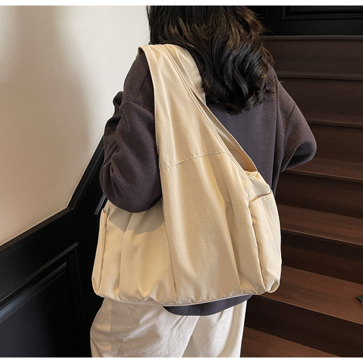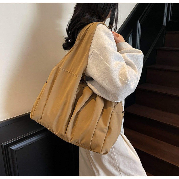 ナイロン布バッグレディースコットン服バッグソフトモチモチ大容量シンプルショルダーバッグ学生手持ちショルダーバッグ通勤トートバッグ