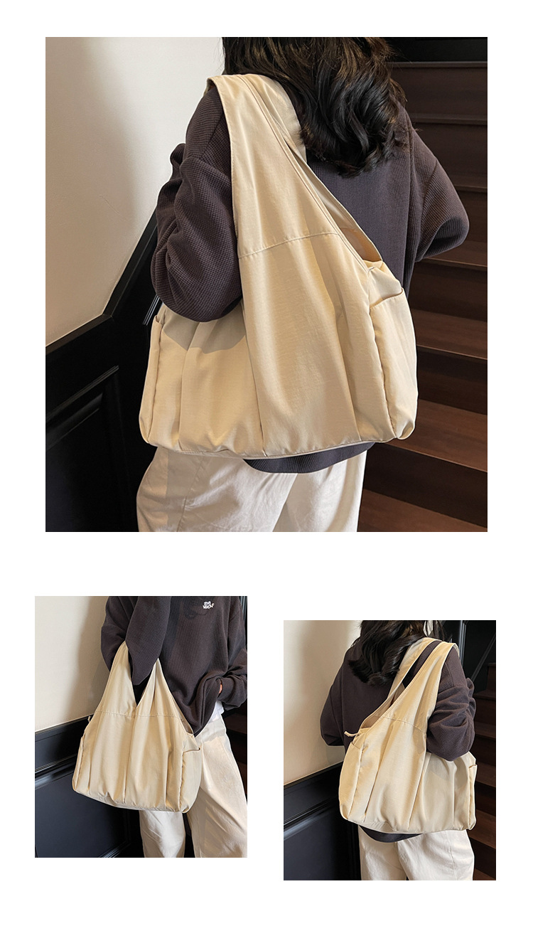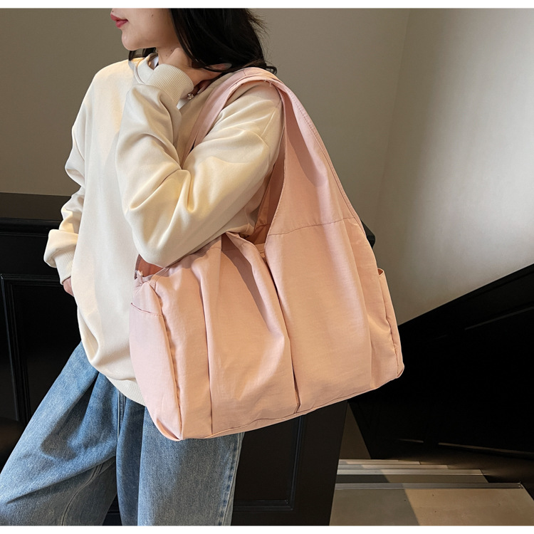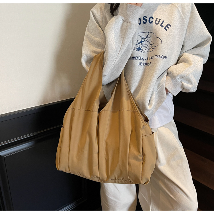 シングル肩脇下バッグ大容量トートバッグレディースナイロン布バッグ新品シワマルチポケット通勤ハンドバッグ