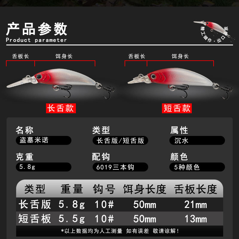 微物远投路亚饵长舌板小米诺沉水深潜防挂底假饵盗墓同款拟饵批发