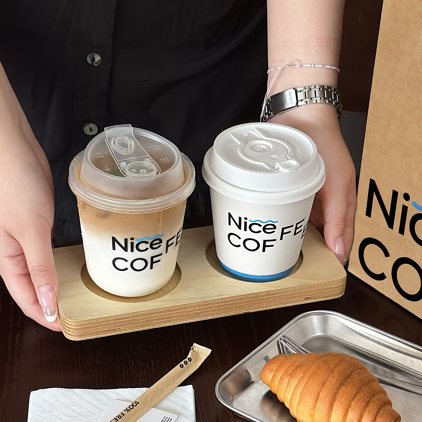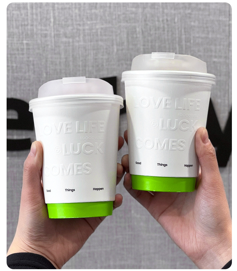 コーヒーカップ使い捨て高級高級洗練された蓋付き販売冷温飲料包装ミルクカップ商用紙コップ