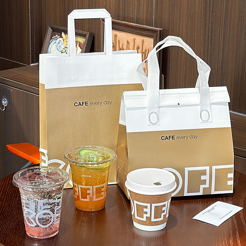 コーヒーバッグカスタムミルクティー飲料の出前手提げ袋とクラフト紙袋のカスタムオーダー
