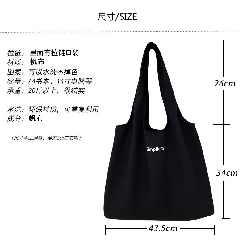 キャンバスバッグ女性シングル肩授業大学生装本ins韓風ファスナー付き文芸デザイン感手提げキャンバスバッグ