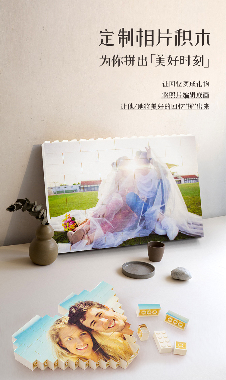 積み木の壁の縦版の写真のパズルの積み木のdiyのアイデアの贈り物は彼女に七夕のバレンタインデーの1件を送ることができます。