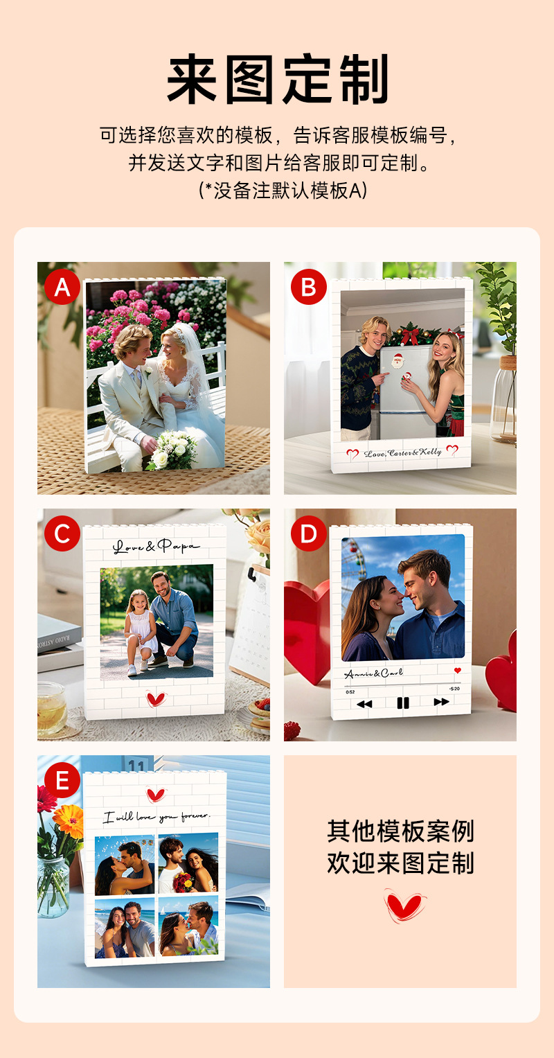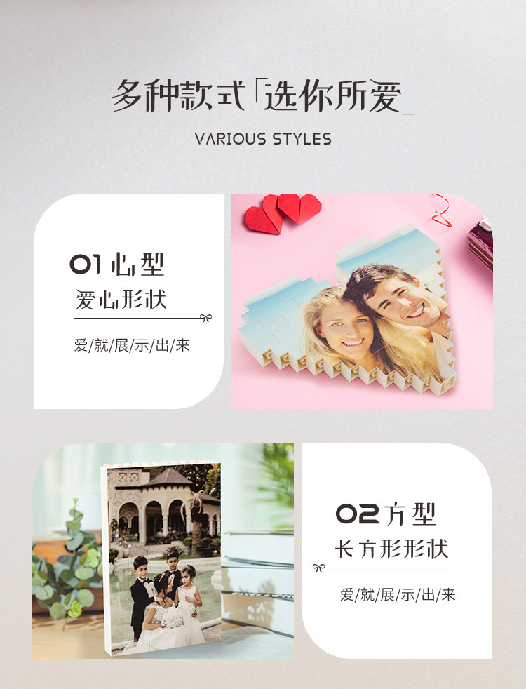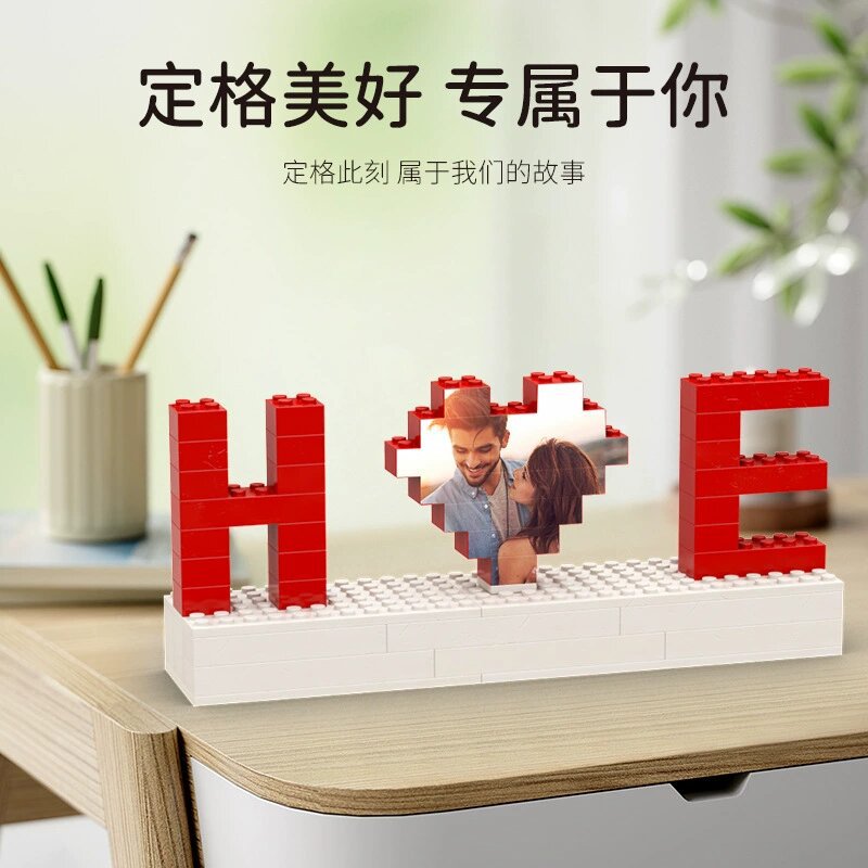 クロスボーダー盲箱互換レゴバレンタインハート型写真パズル積み木玩具diyクリエイティブプレゼント