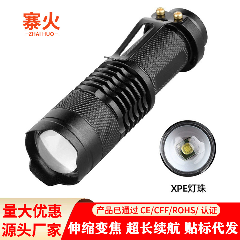 led迷你铝合金手电筒户外强光超亮长续航便携式多功能变焦工作灯