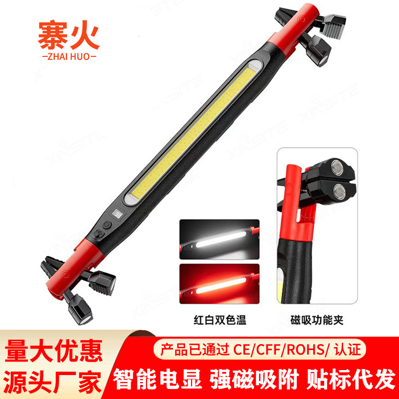 led手电筒户外强光超亮长续航多功能COB应急维修工作灯带挂钩夹子