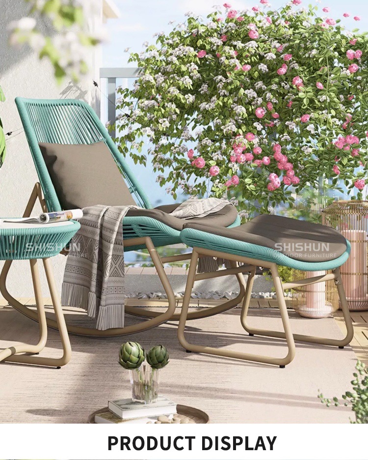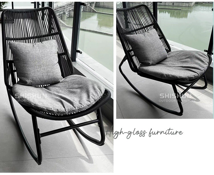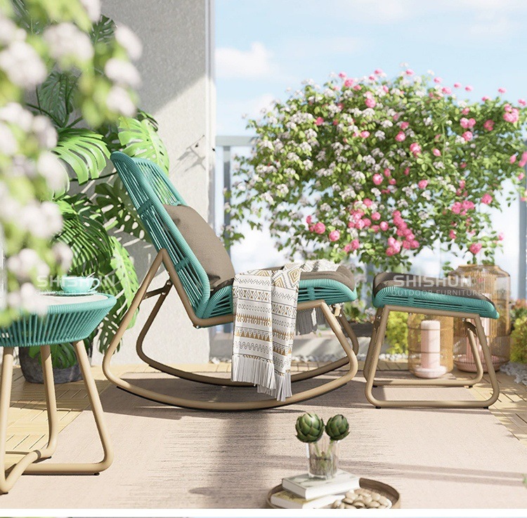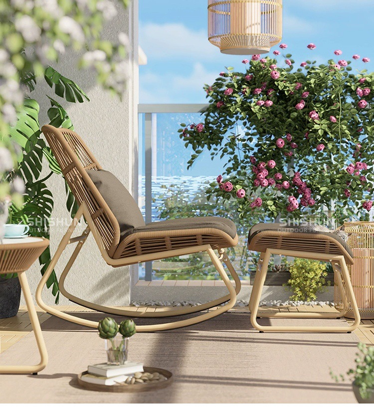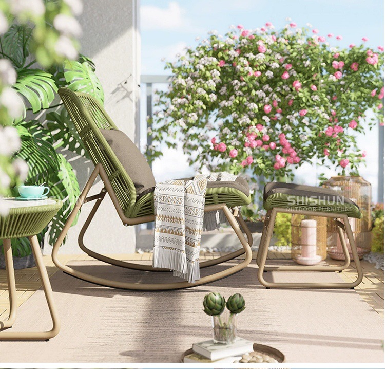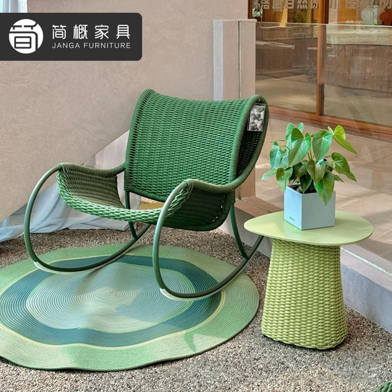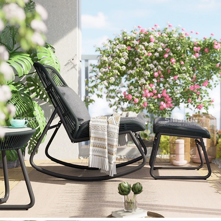 屋外ベランダ北欧カジュアル小ソファー茶何组み籐编みロッキングチェア三点セット怠け者庭ガーデン家具