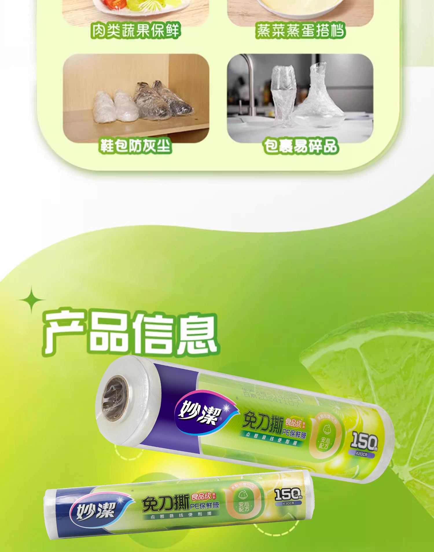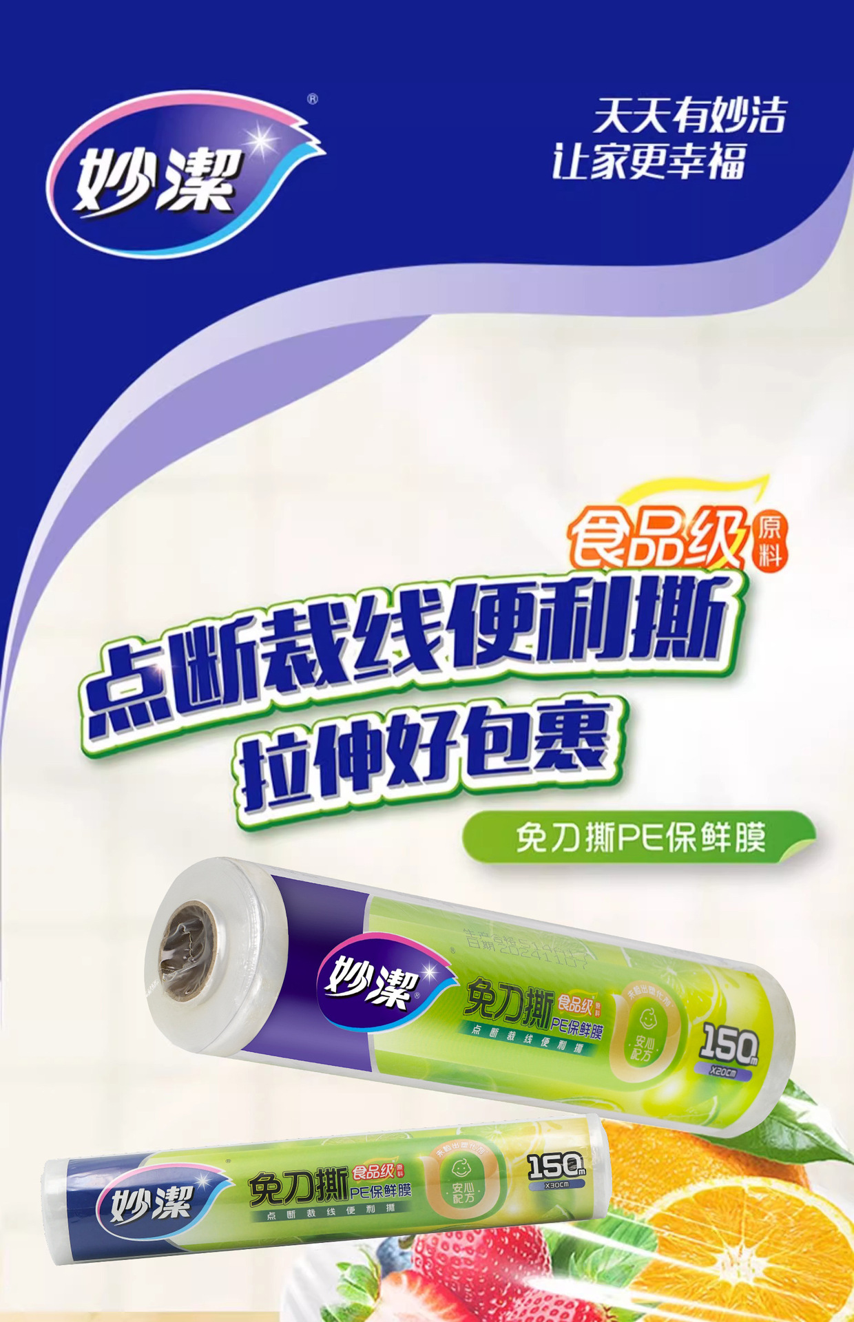 妙洁保鲜膜食品级家用厨房冰箱微波炉专用大卷点断式一次性耐高温