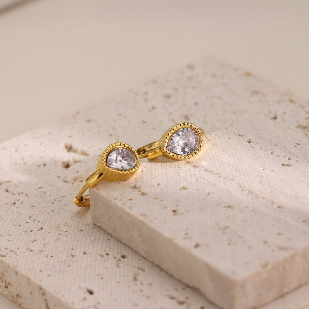 国境を越えた欧米の水滴ステンレスにドリルイヤリングを入れた女性の贅沢な高級感は18kの金をメッキして色を落とさない耳飾り