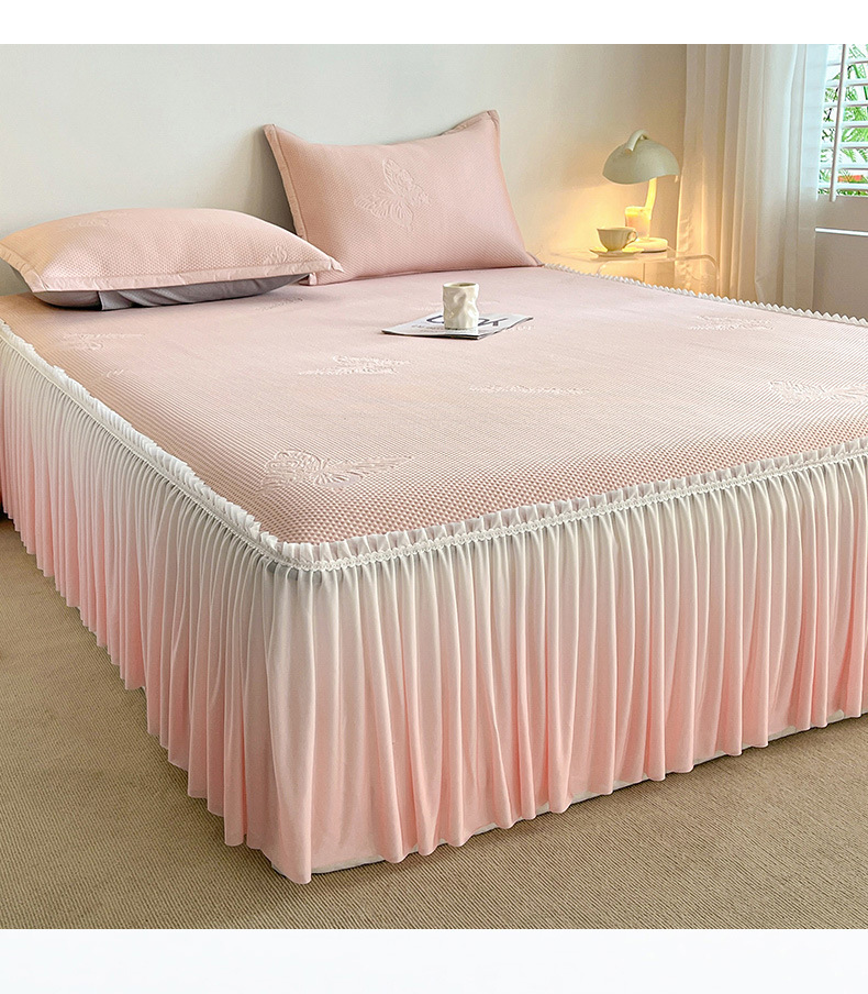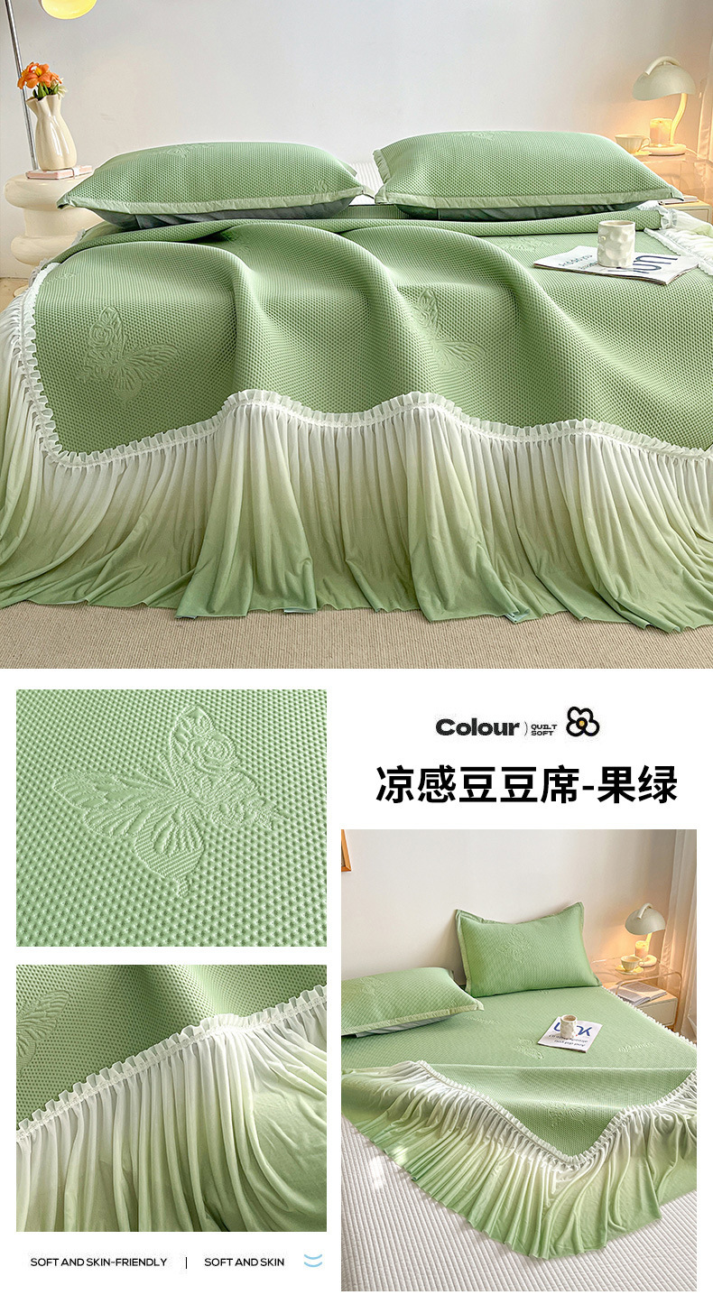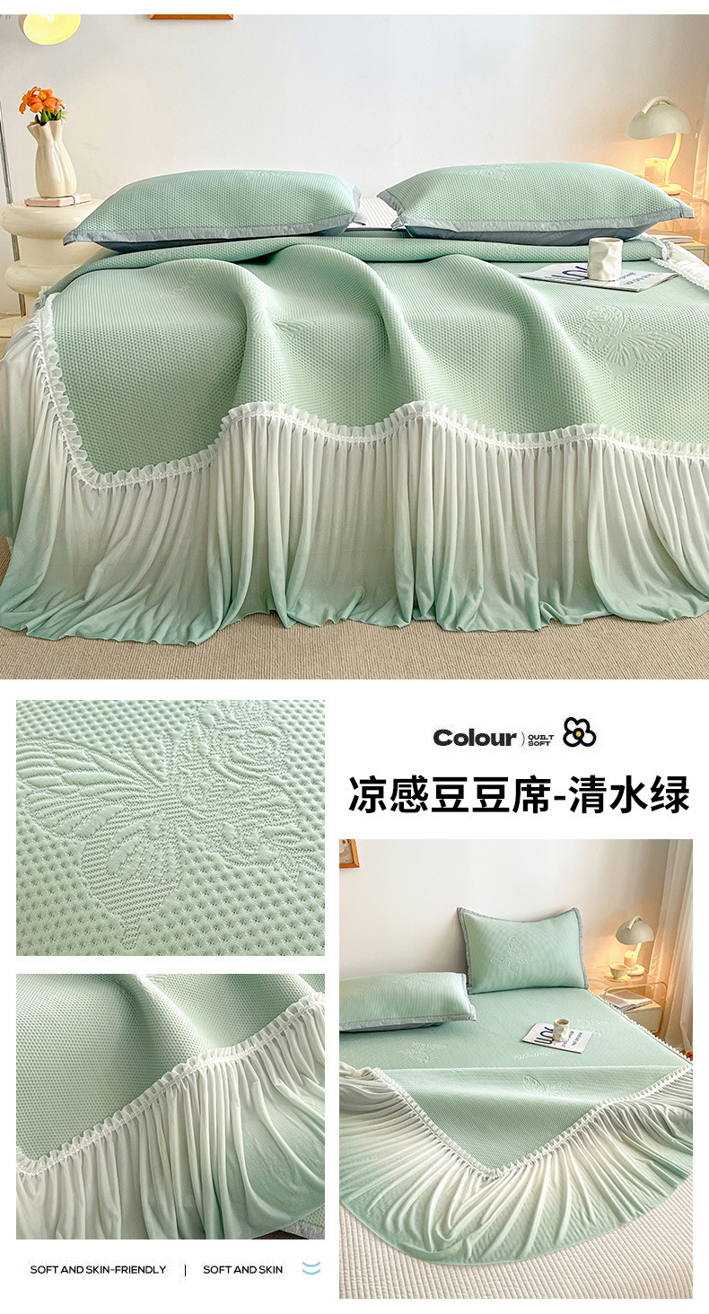 夏の立体ジャカードの冷たい豆の席のお姫様風のベッドのスカートのタイプのシンプルな純色の肌の涼しさの心地良い卸売り