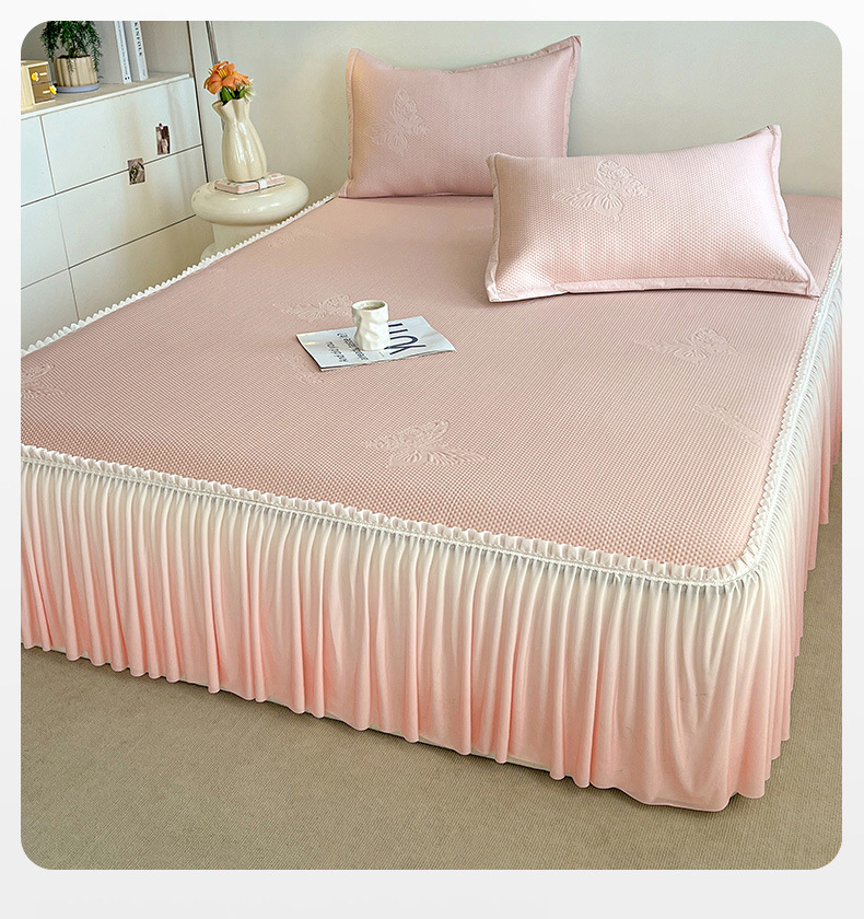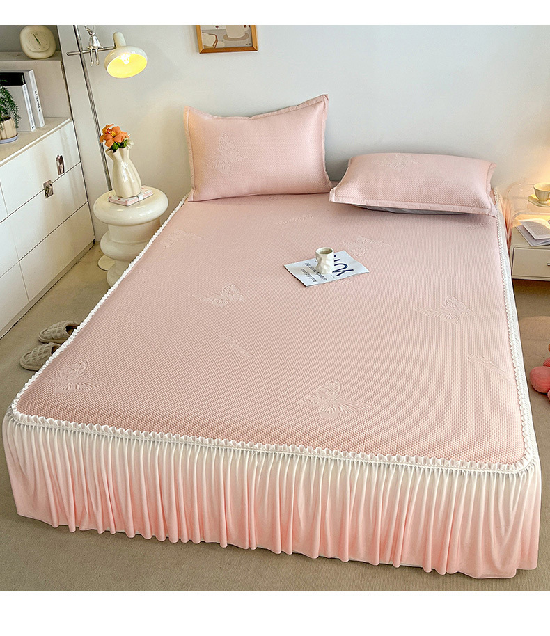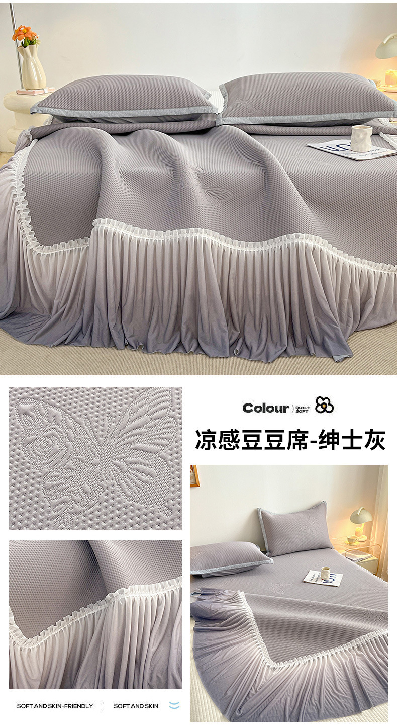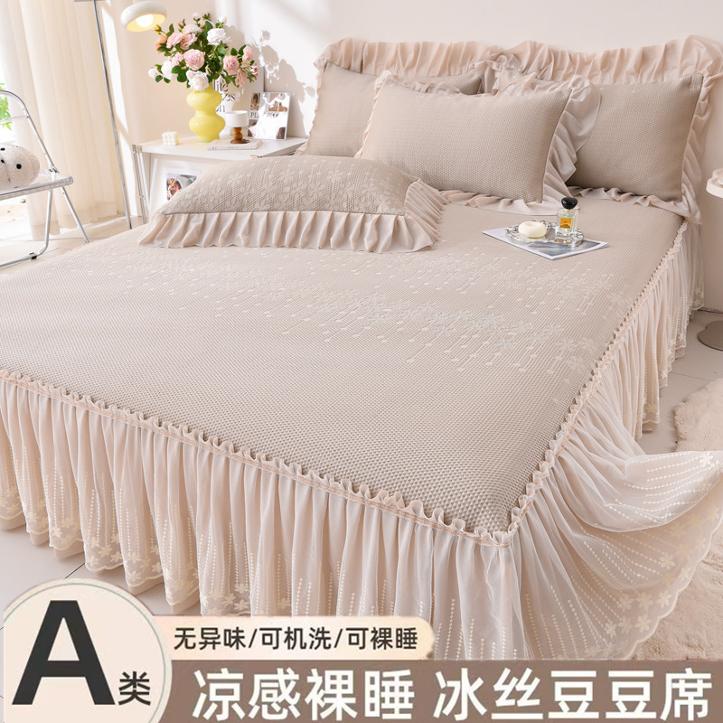 韓国版プリンセス風ベッドスカート氷糸凉席三点セット夏レースベッドカバー氷豆エアコン畳水洗い可能