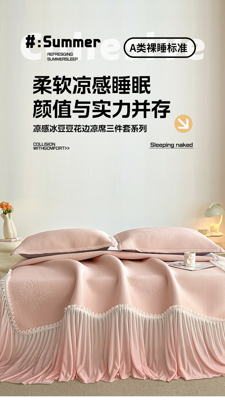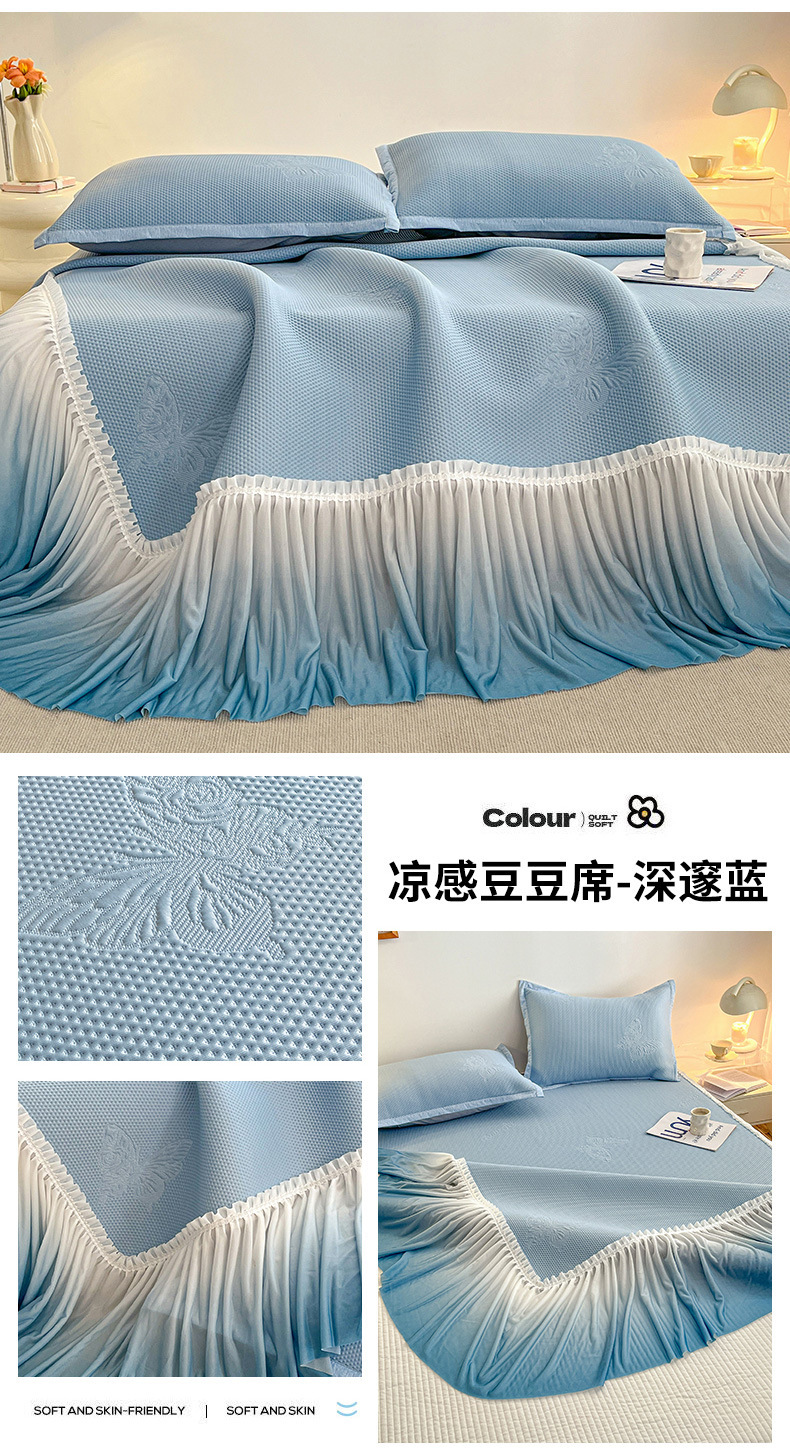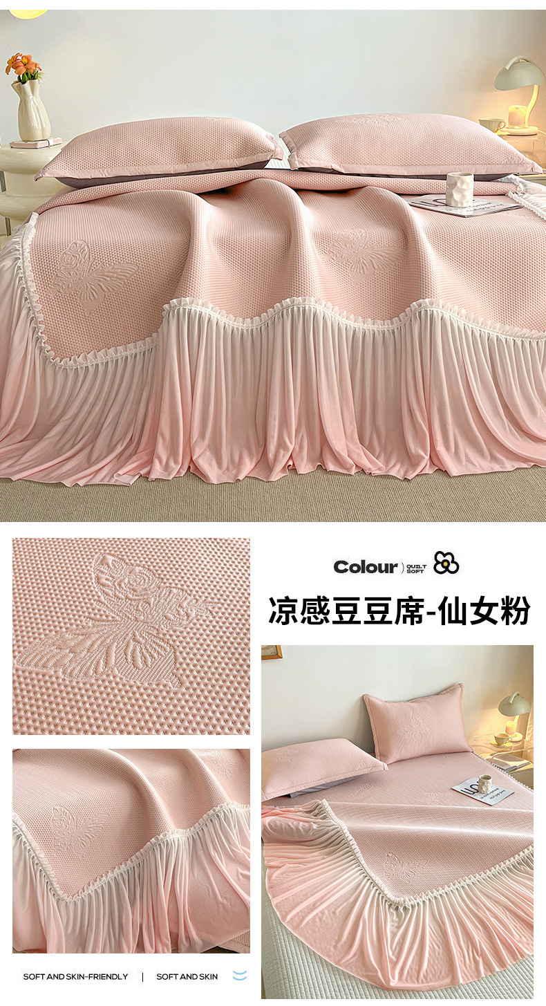 韓国版プリンセス風ベッドスカート氷糸凉席三点セット夏レースベッドカバー氷豆エアコン畳水洗い可能