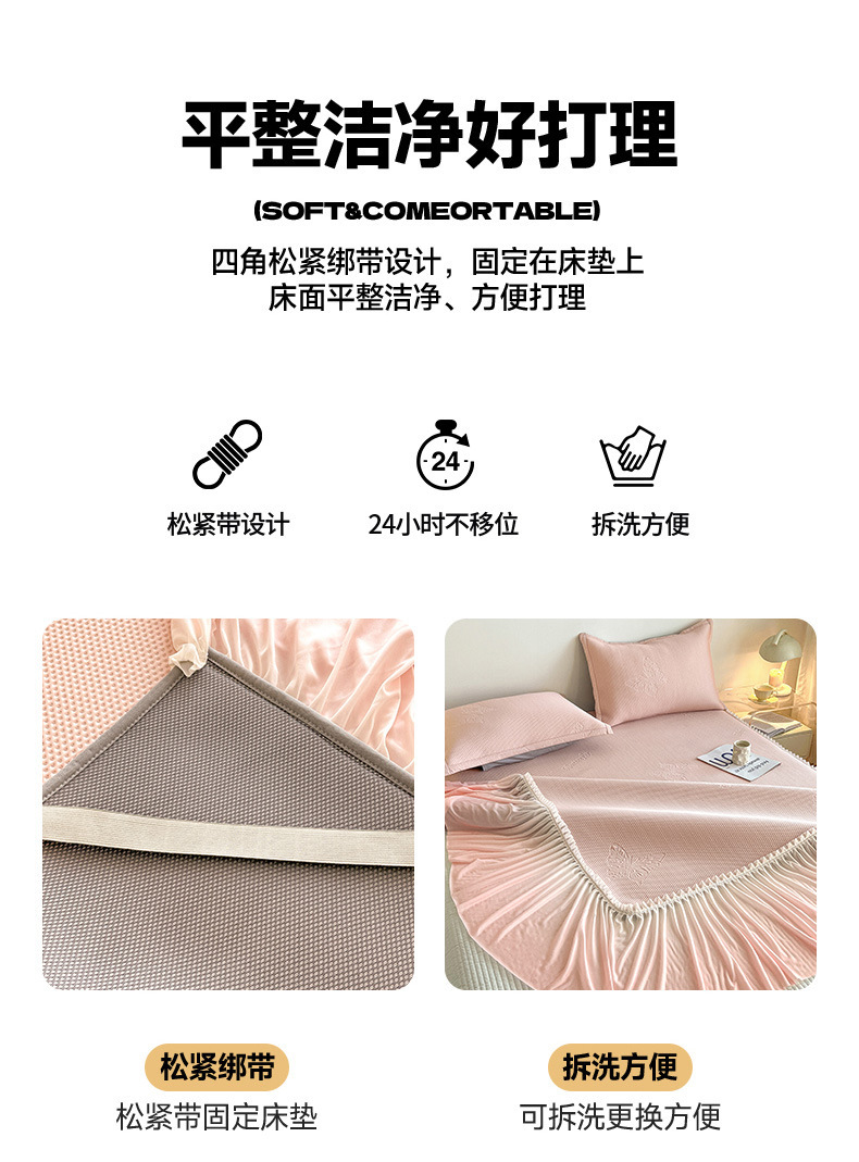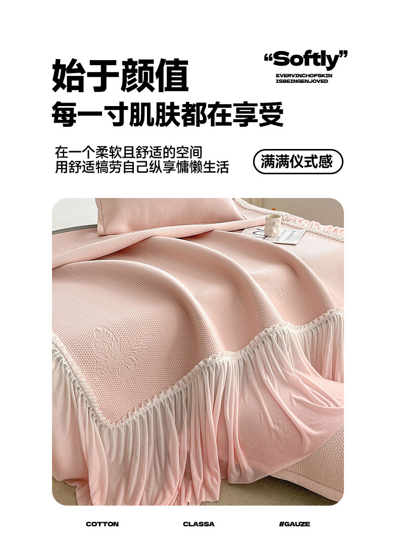 2025新型高級レトロフランス軽贅沢風PE涼感ジャカードソフト凉席ベッドスカート三点セットエアコン畳