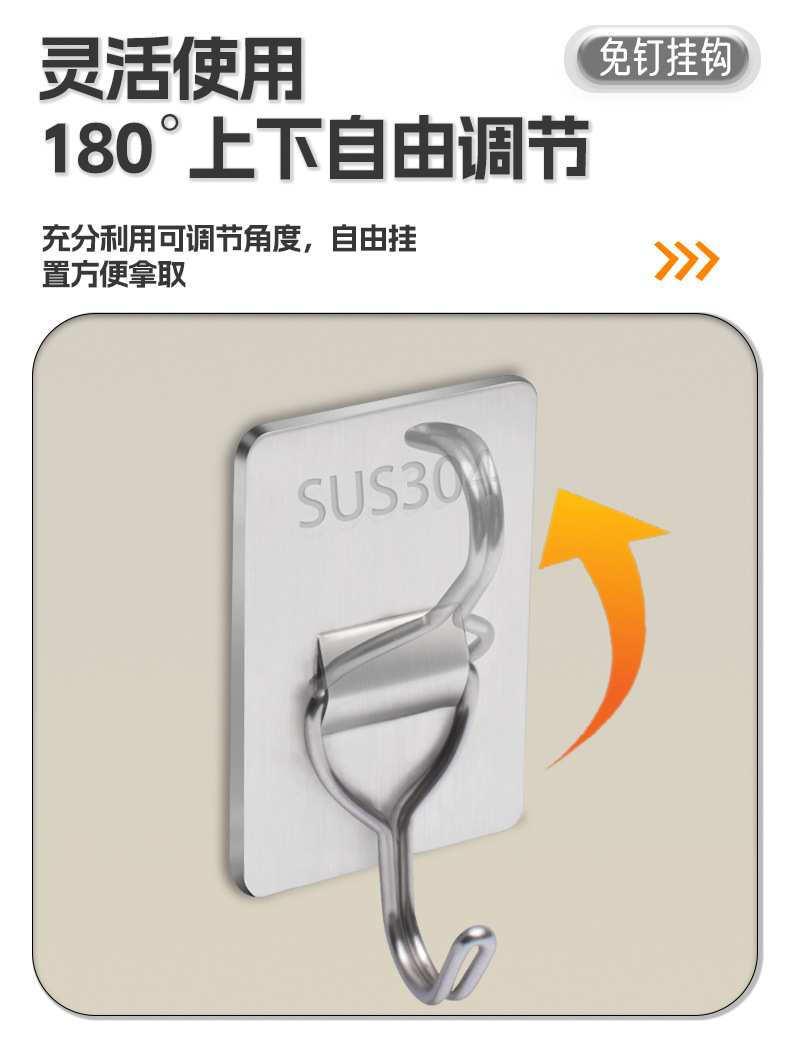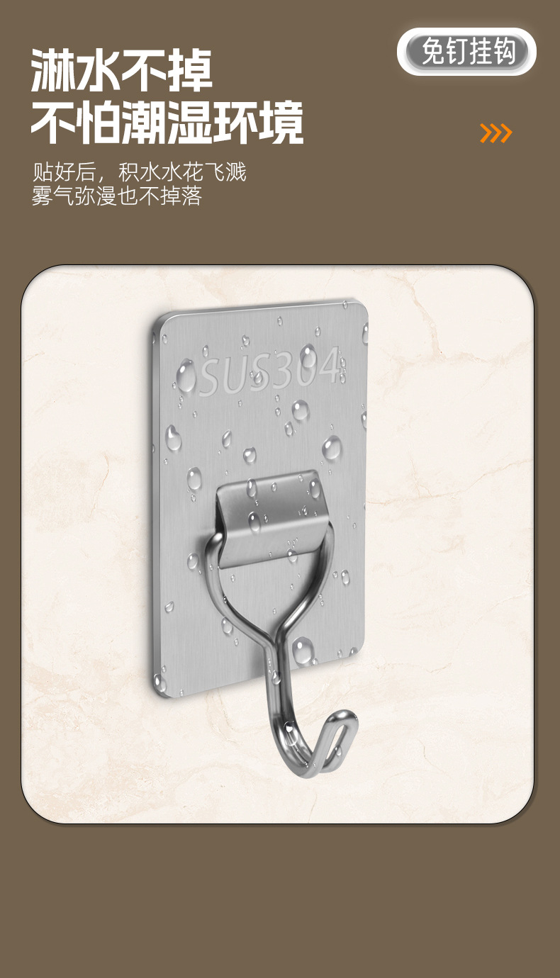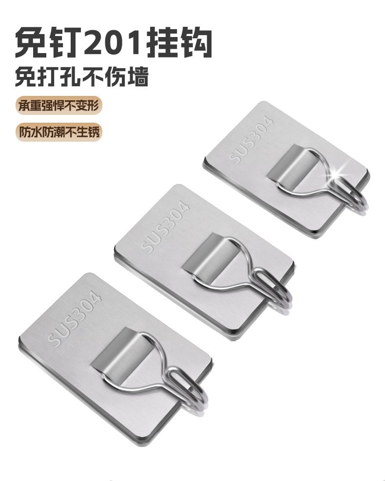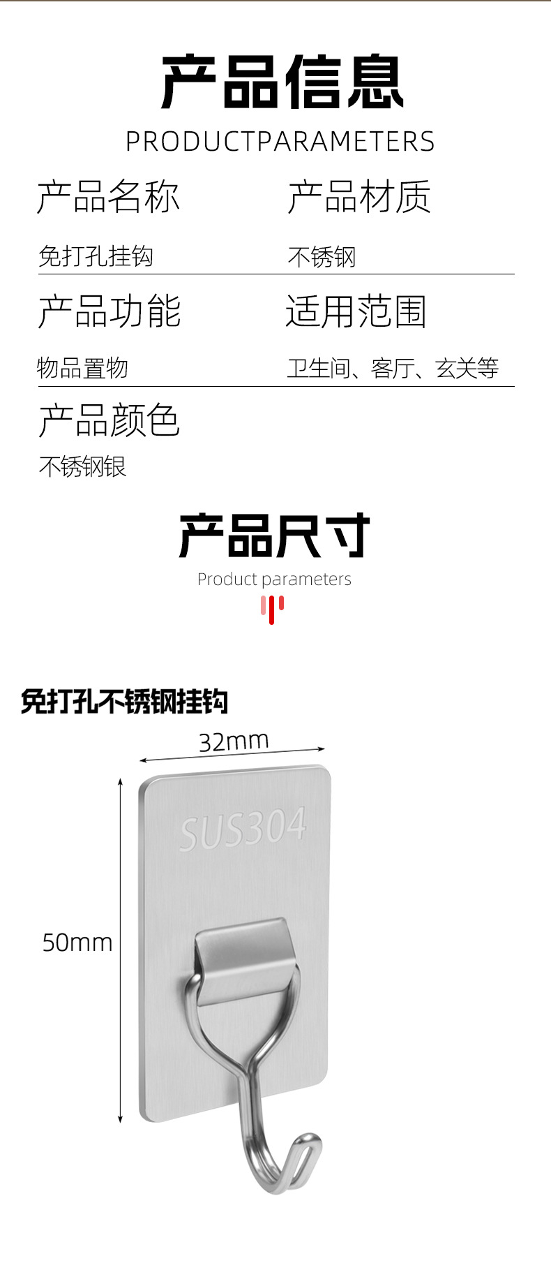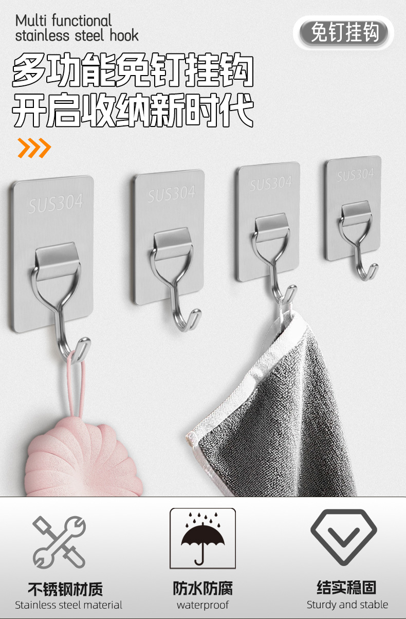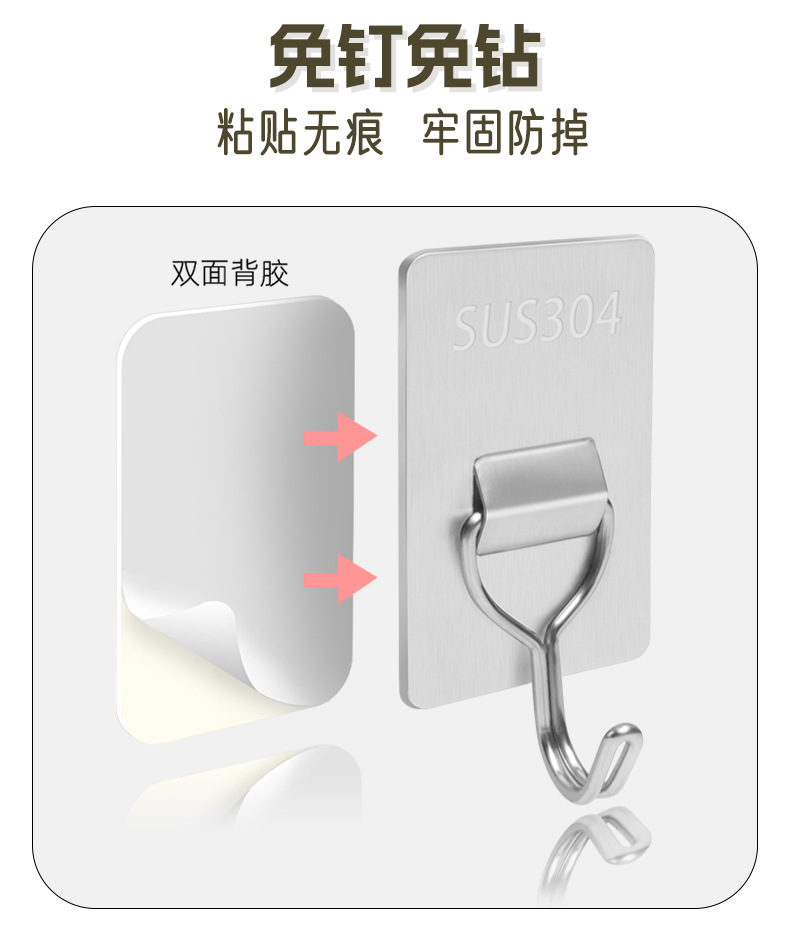 フックは強力な耐荷重粘着テープで、穴を開けずにキッチンやバスルームのドアの後ろの壁に跡が残らない粘着フックを貼り付けることができます。ステンレス製のフックです。