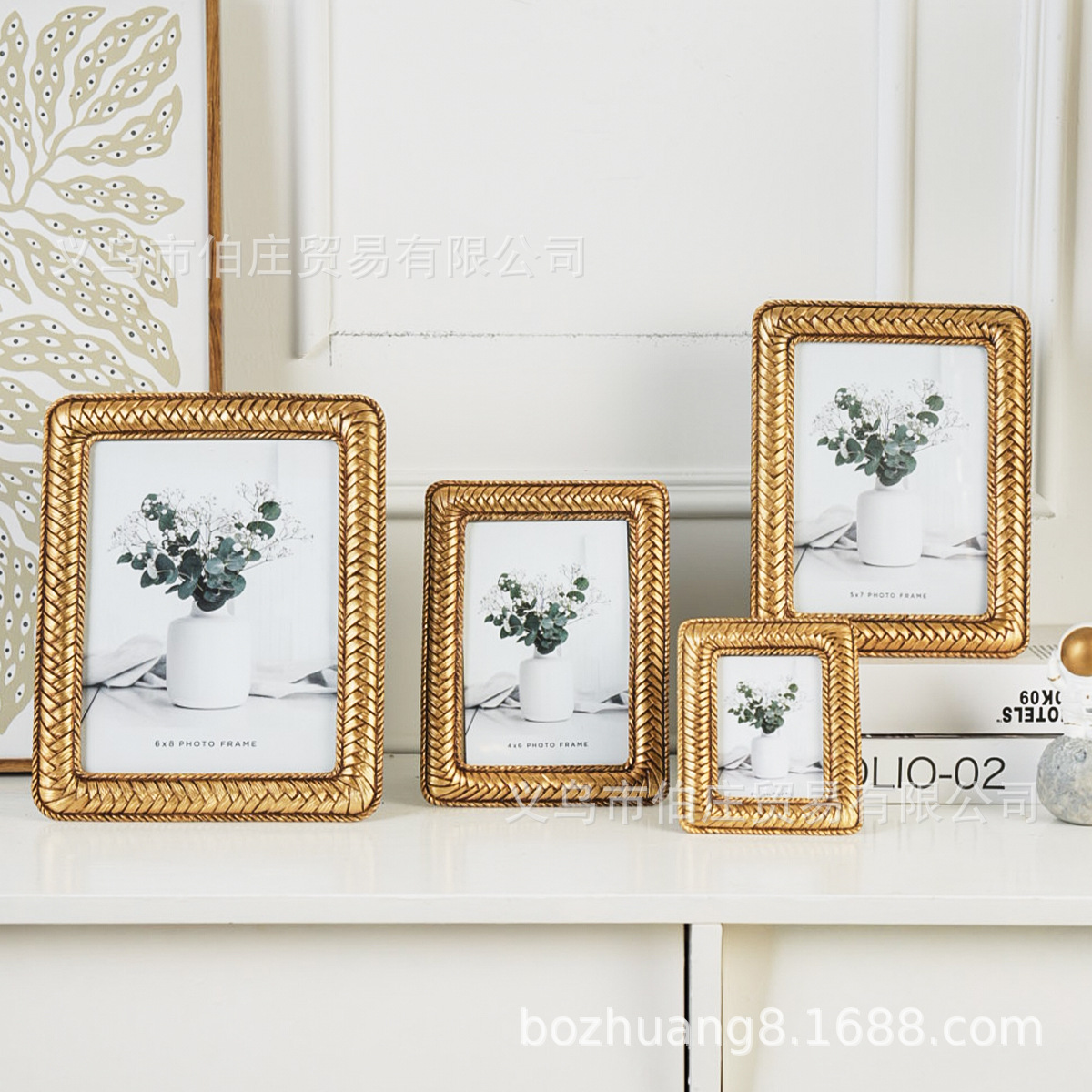 織りクラフトゴールデンファッションヨーロッパ樹脂フォトフレームテーブル、家庭用装飾品装飾装飾フォトフレーム装飾