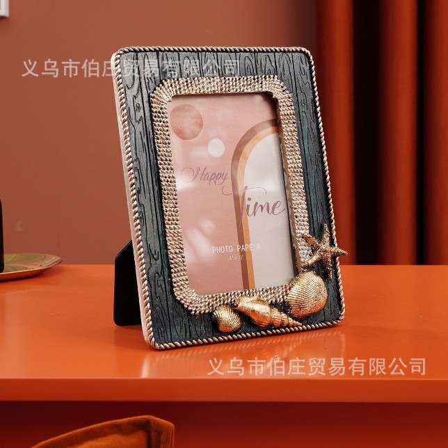 1pc クリエイティブ木目ヒトデシェル要素フォトフレーム樹脂古いスタイルテーブル 6inch 雰囲気装飾品