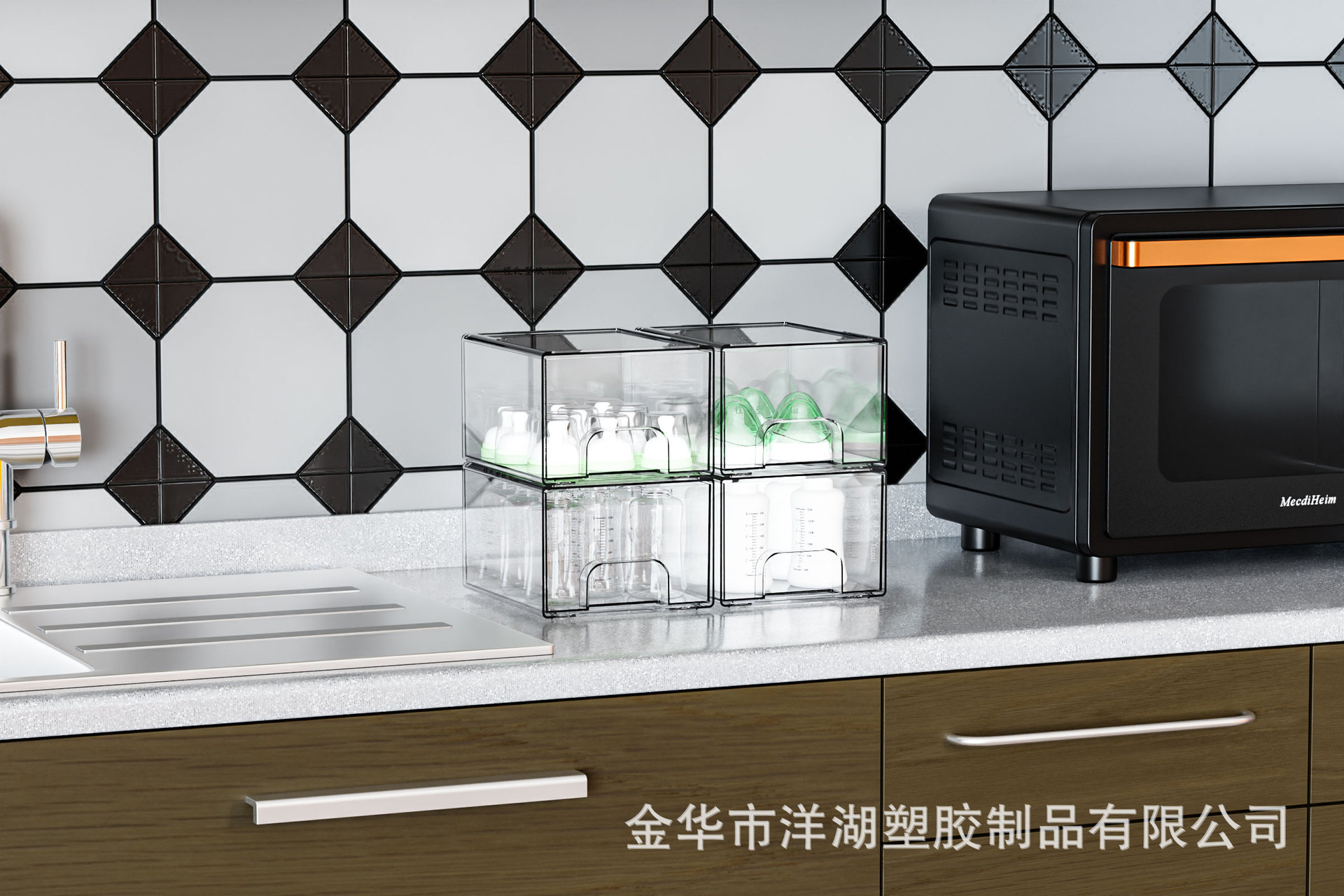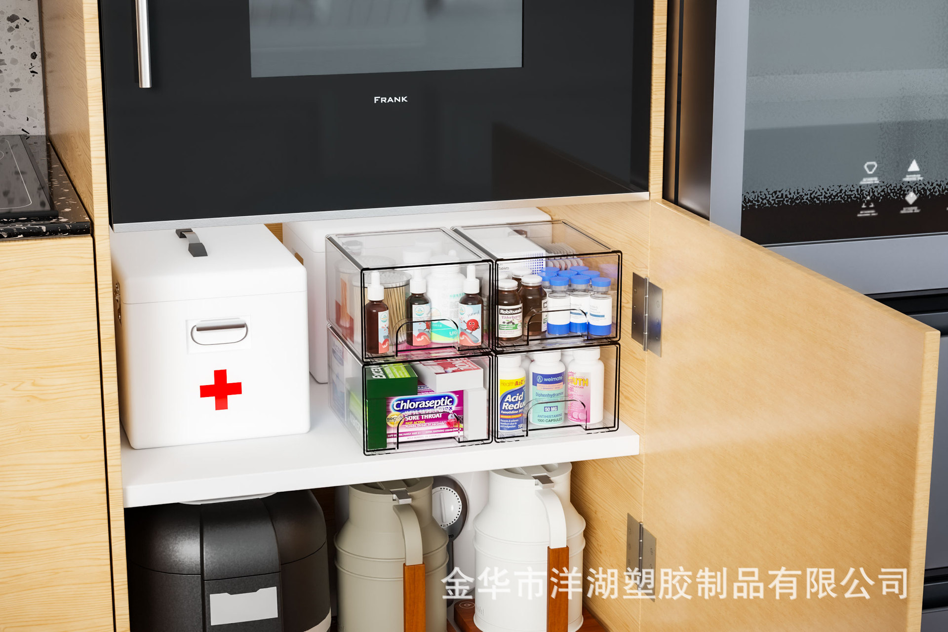 透明収納ボックスは引き出し式収納文房具コーヒー化粧品収納ボックスのデスクトップ雑物収納ボックスを重ねることができます。