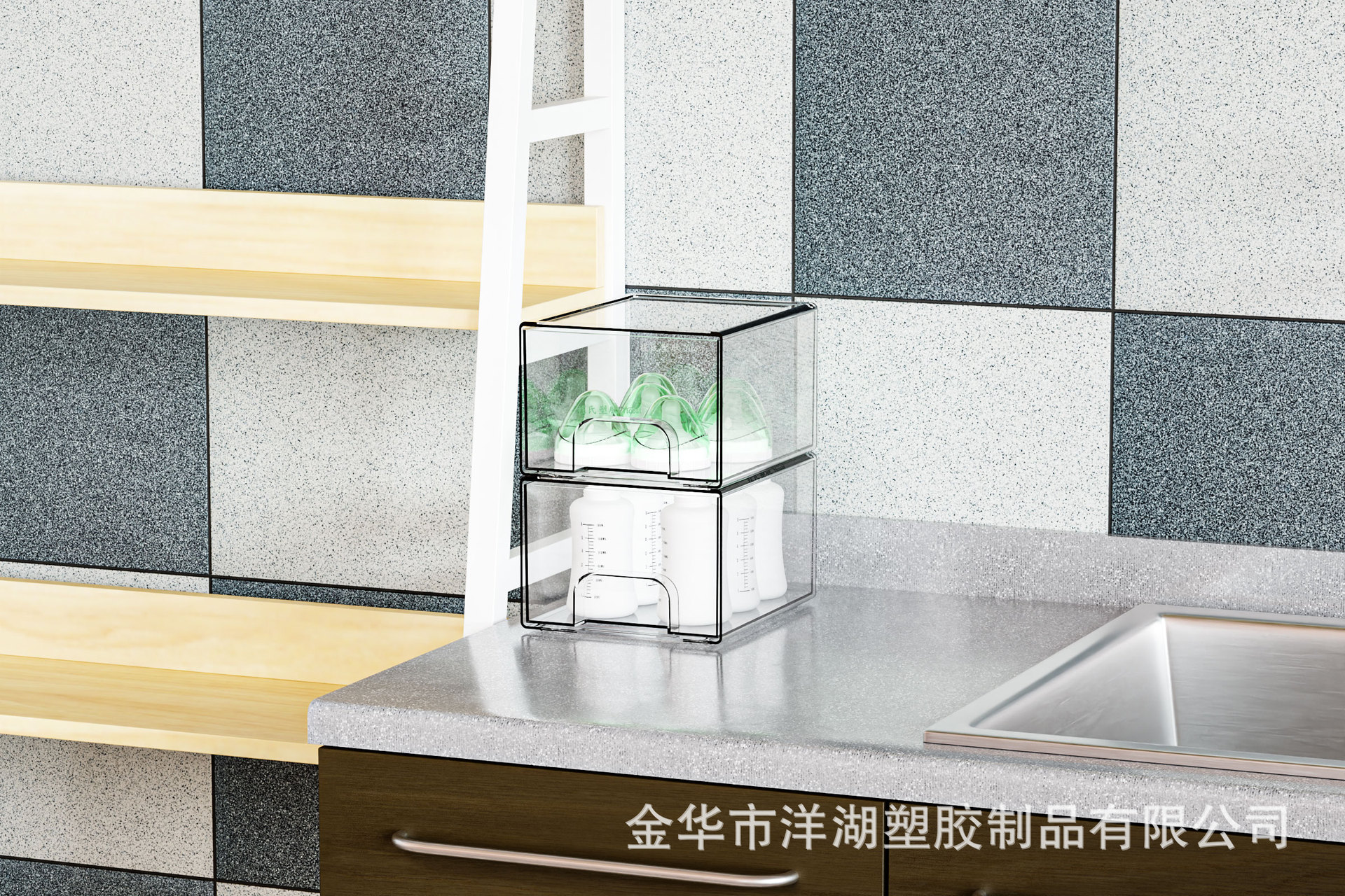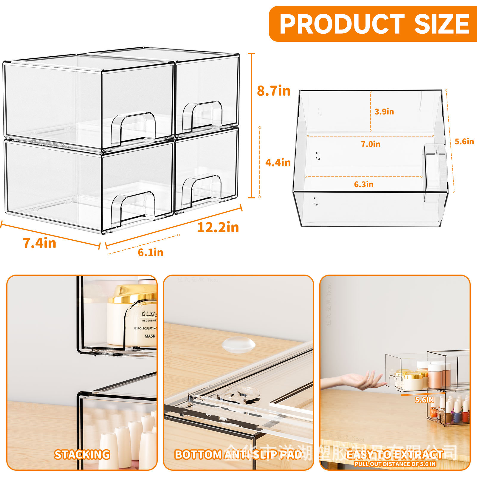 可叠加化妆品收纳盒桌面透明抽屉式护肤品分格盒防尘大容量整理盒