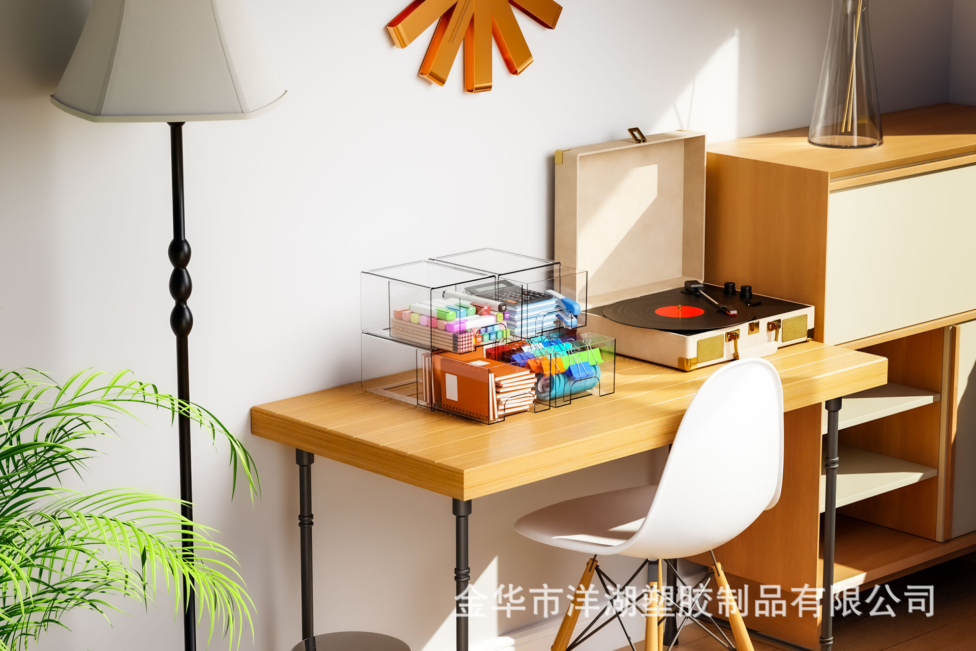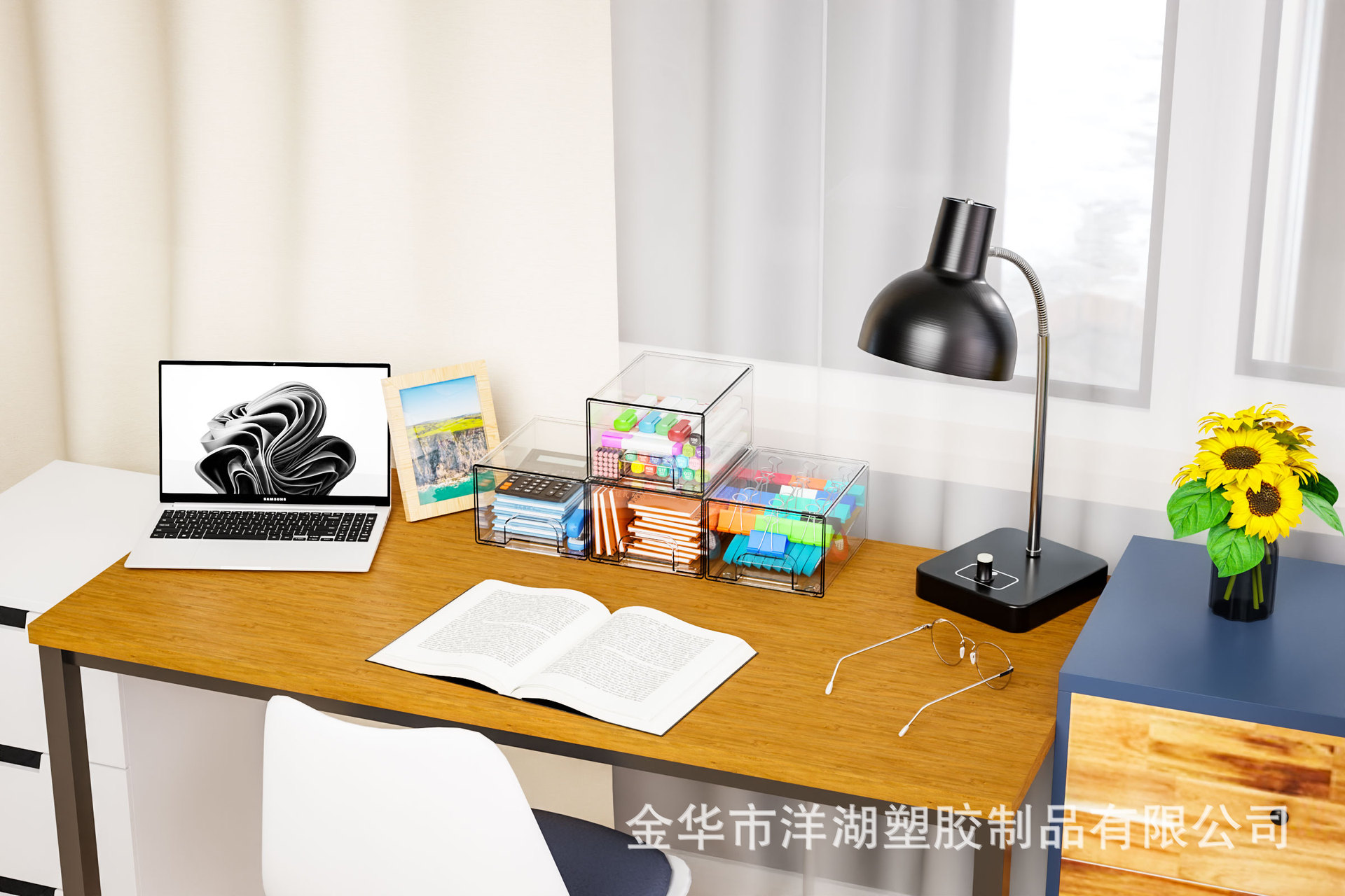 デスクトップ引き出し収納ボックス透明アクリル文具雑貨ボックスデスク化粧品マスク収納ラックキャビネット