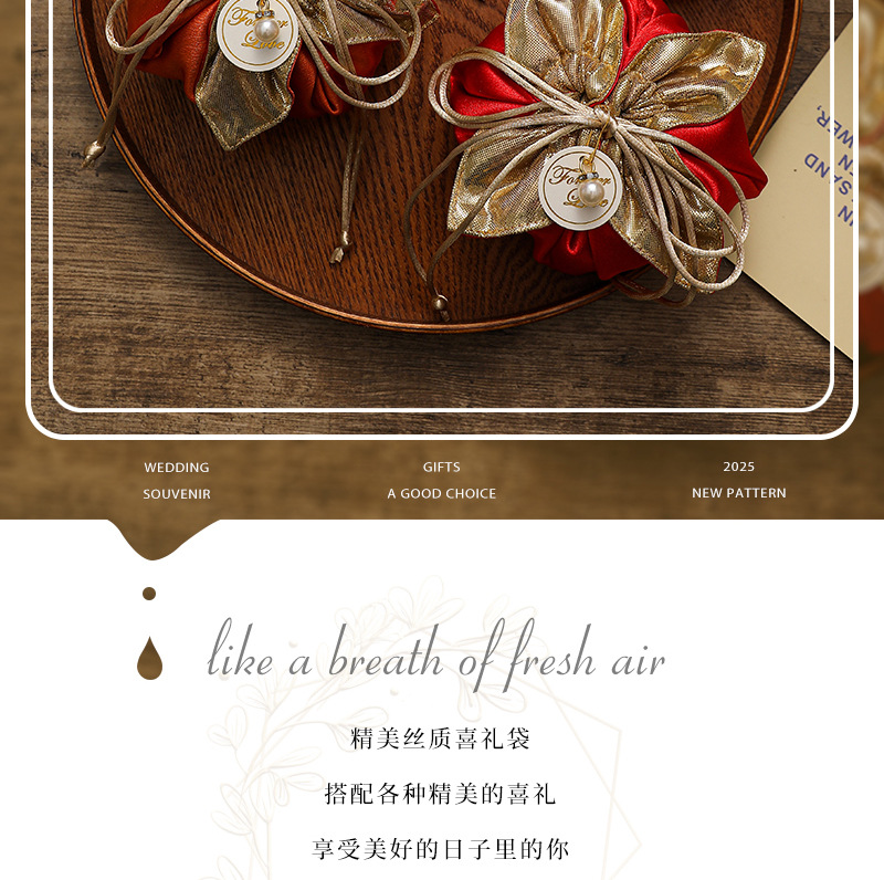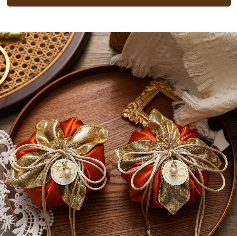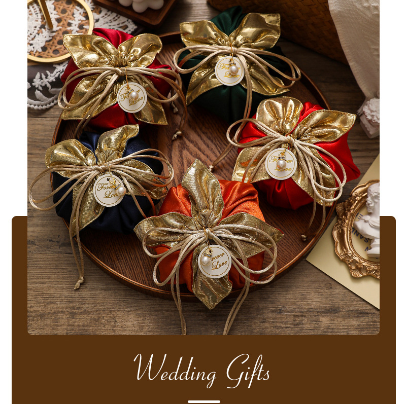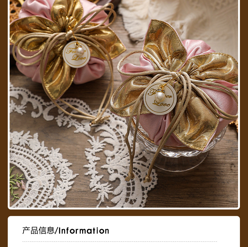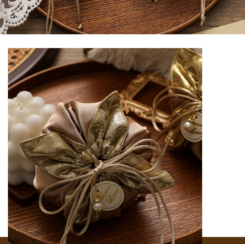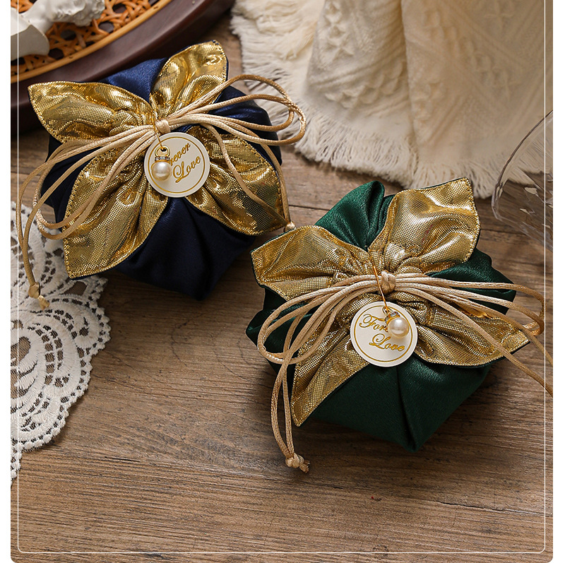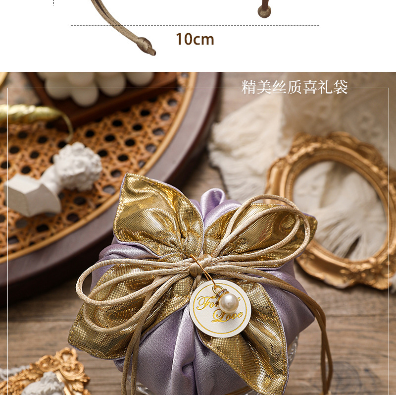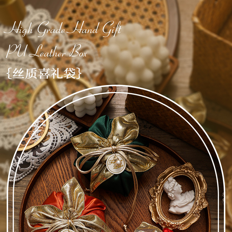 新型結婚喜糖箱皮質手提げ喜糖袋シルク糖果袋結婚式お返し糖箱束口プレゼント袋