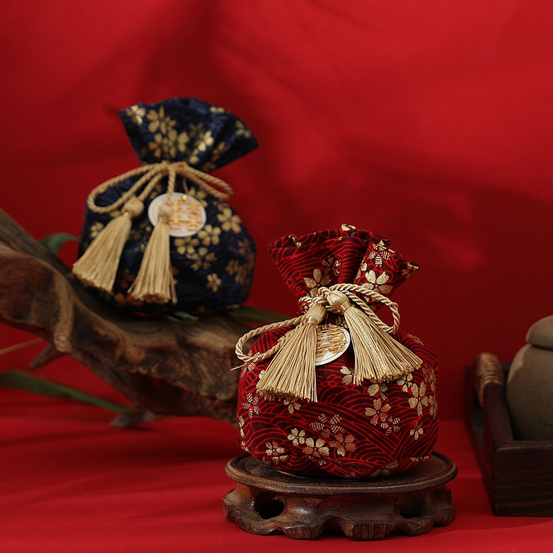 中国式結婚式喜糖袋レトロ国風綿布袋結婚喜糖箱円形束口結婚祝いキャンディー袋