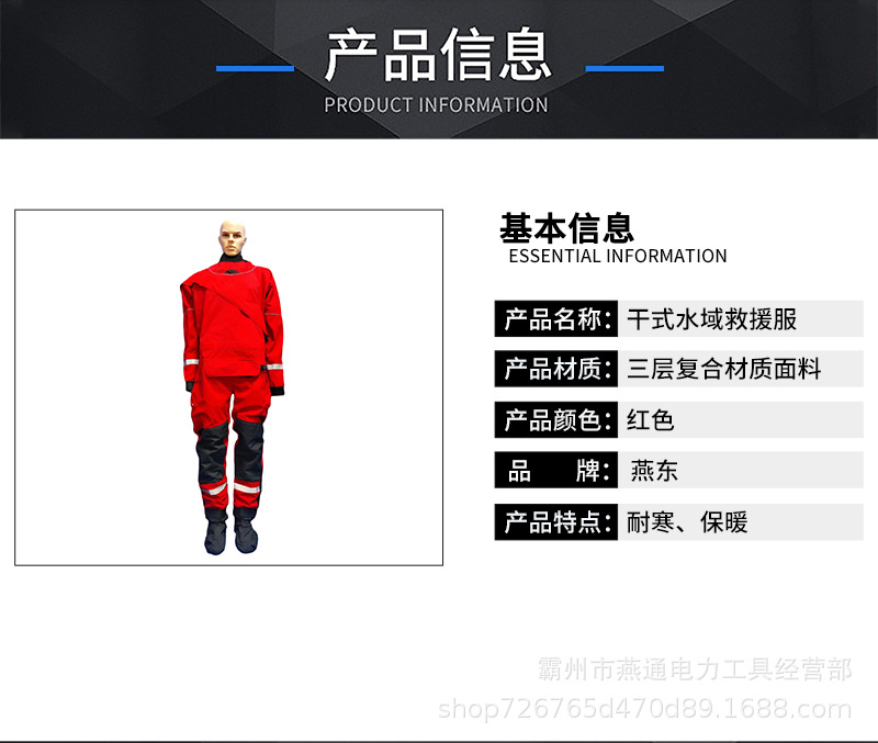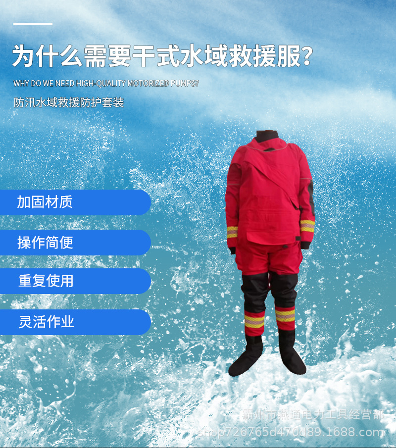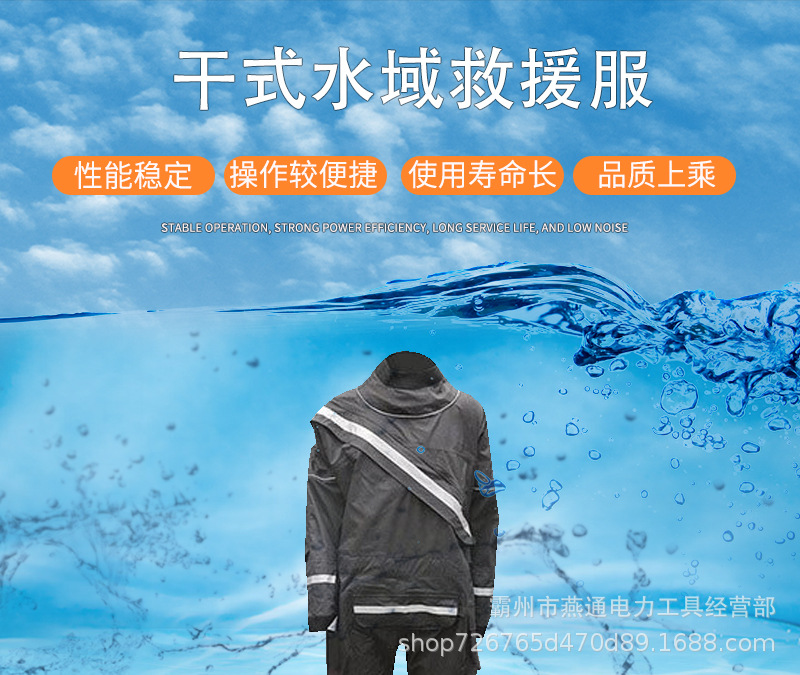 1.1用途:干式水域救援服满足消防员水域救援,防护服的外表面应具有防渗水性,为消防员水域救援服。