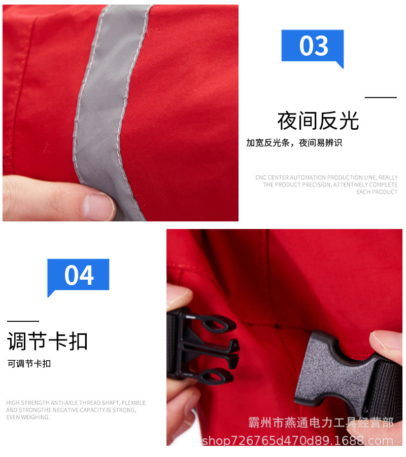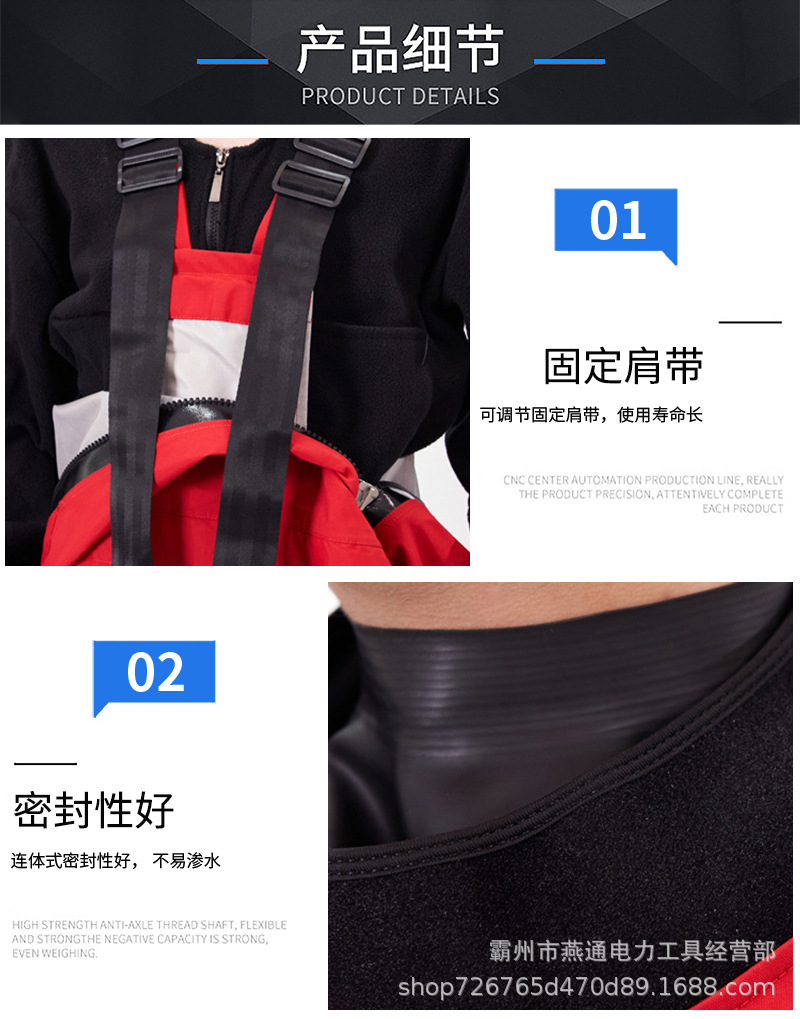 4.内置可拆卸背带,可调节,在水中可以穿脱救援服的上半部分而下半部分不渗水;