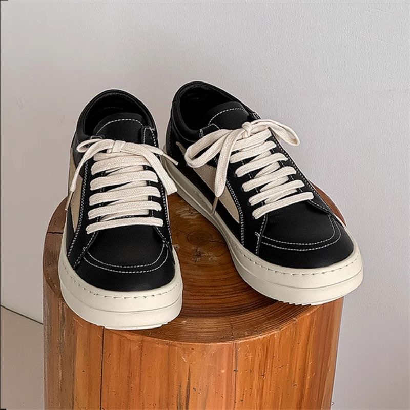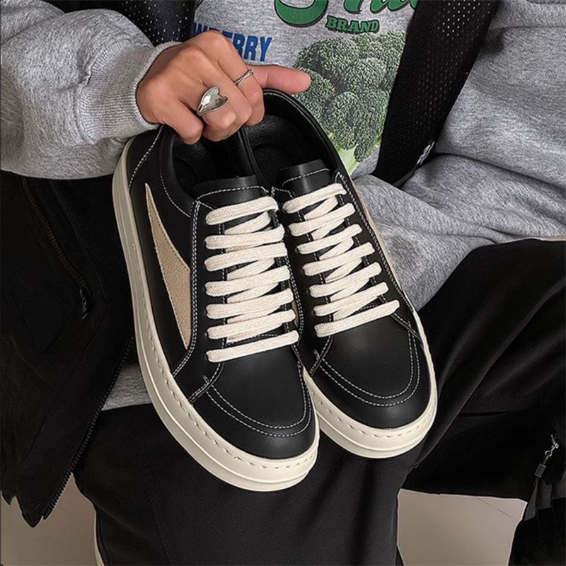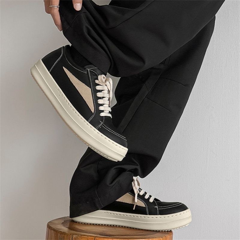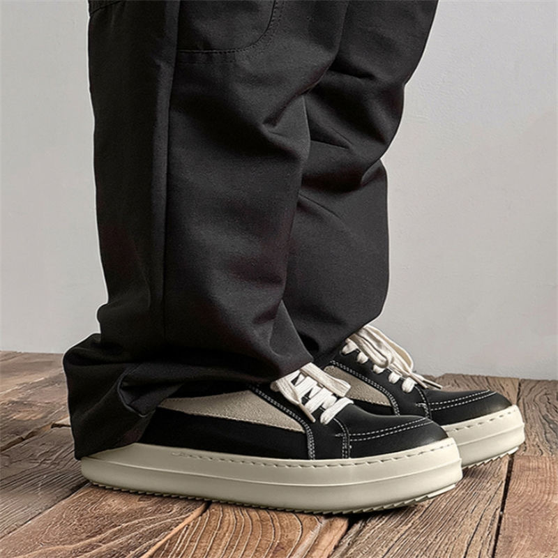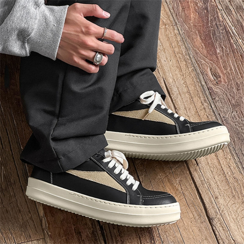 紳士靴イントレンディなブランド 2025 新しいアメリカンレトロ黒と白の革厚底スニーカー男性の多用途スポーツとカジュアルシューズ