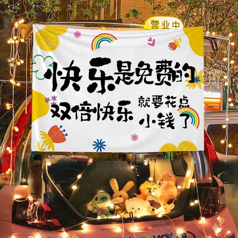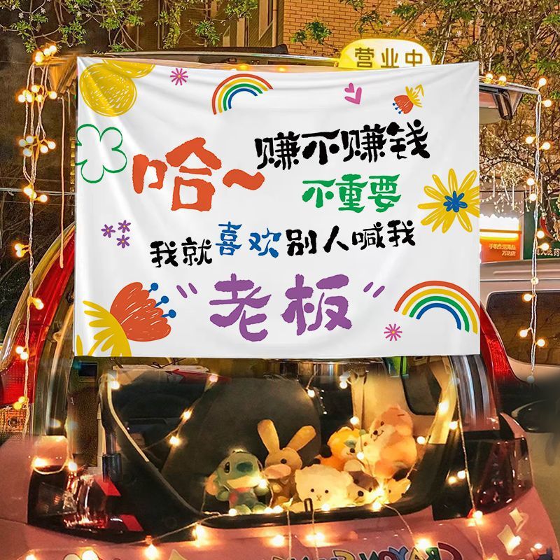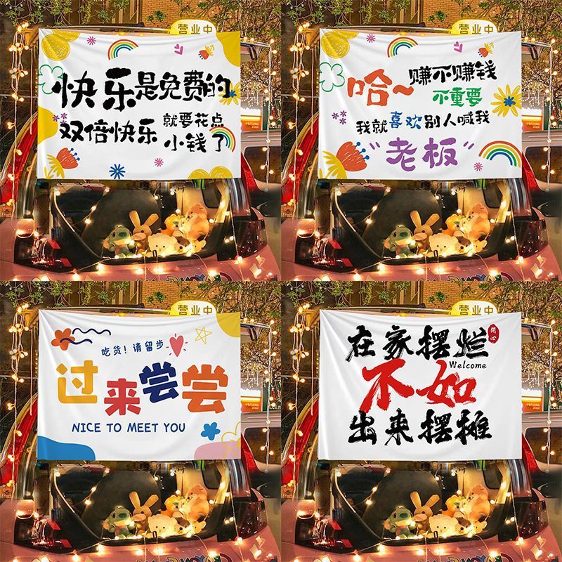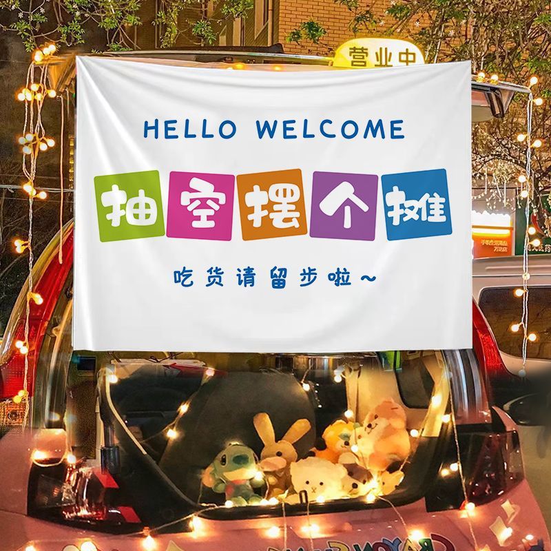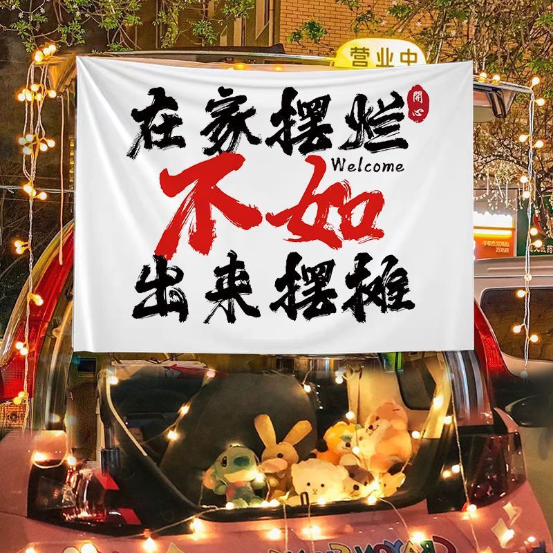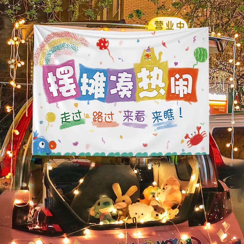 汽车后备箱摆摊装饰布集市夜市摆地摊车户外广告横幅招牌背景布