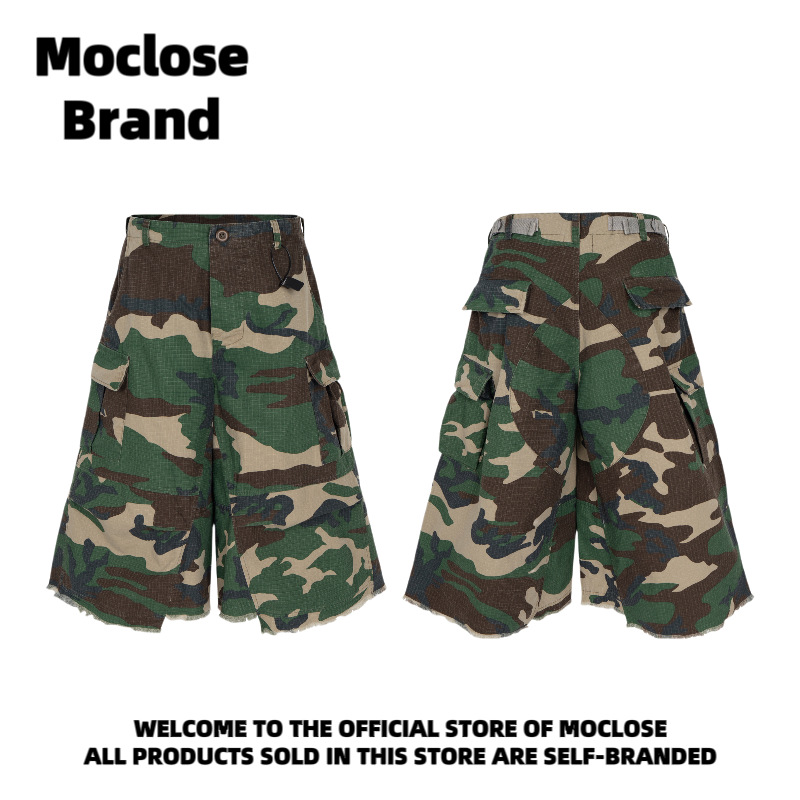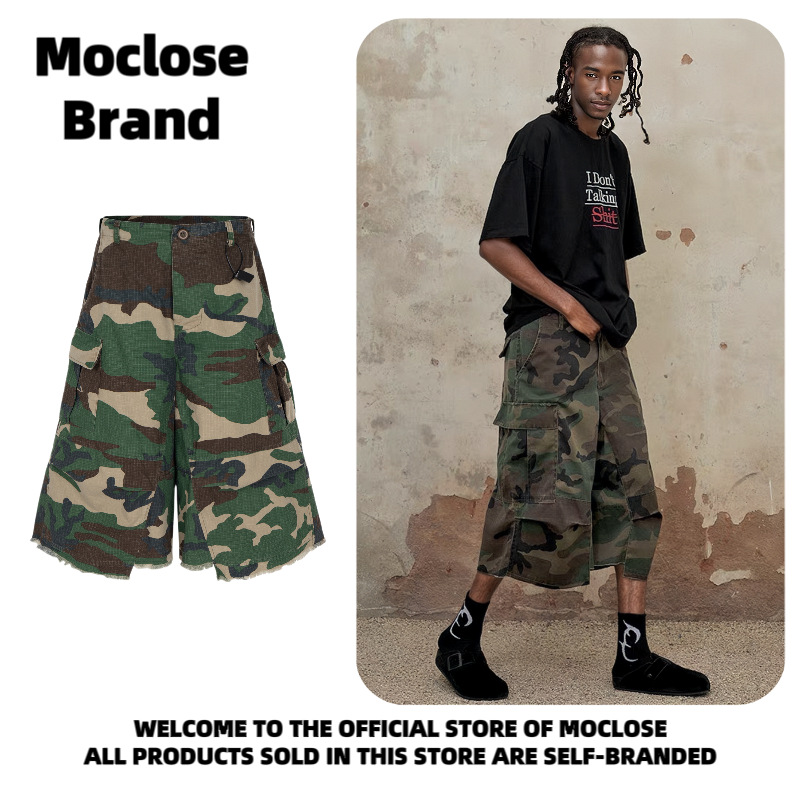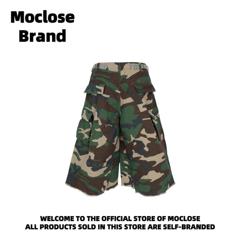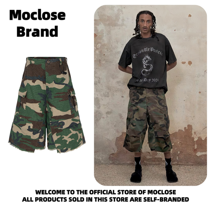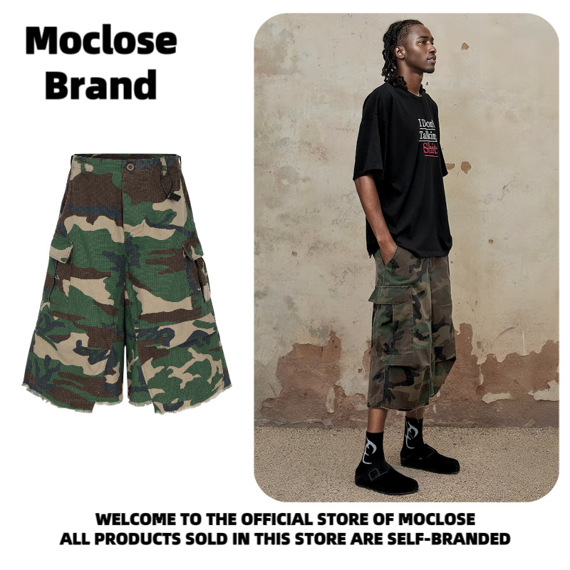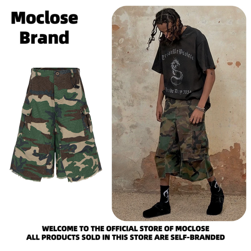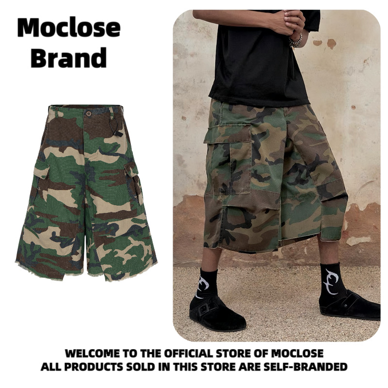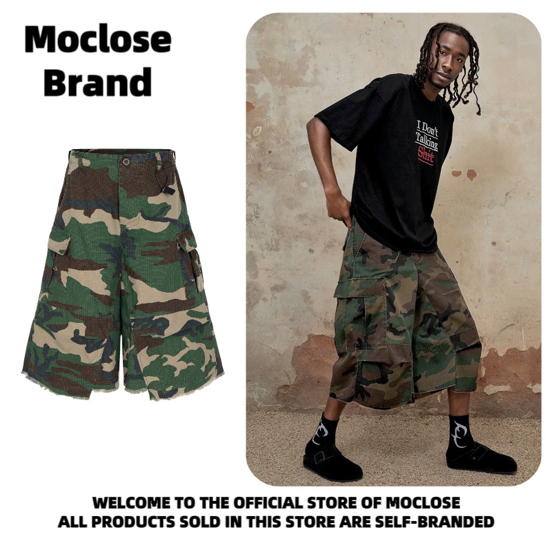 Moclose アメリカンストリート 春夏 カジュアル 迷彩 ダメージ加工 ローエッジシルエット メンズ レディース ゆったり ワークウェア クロップドショーツ