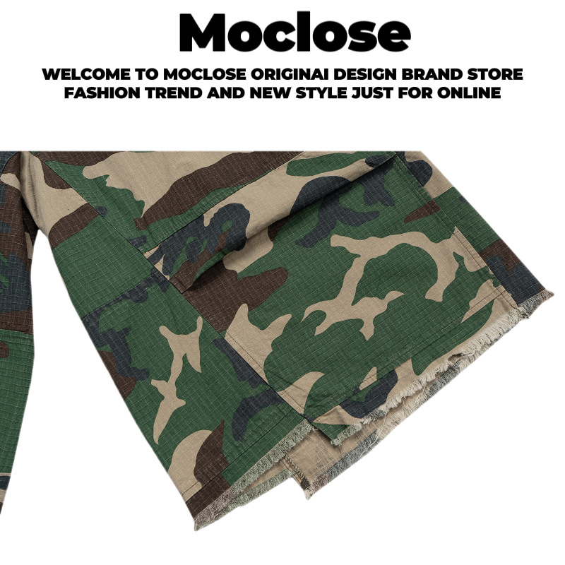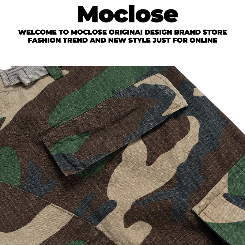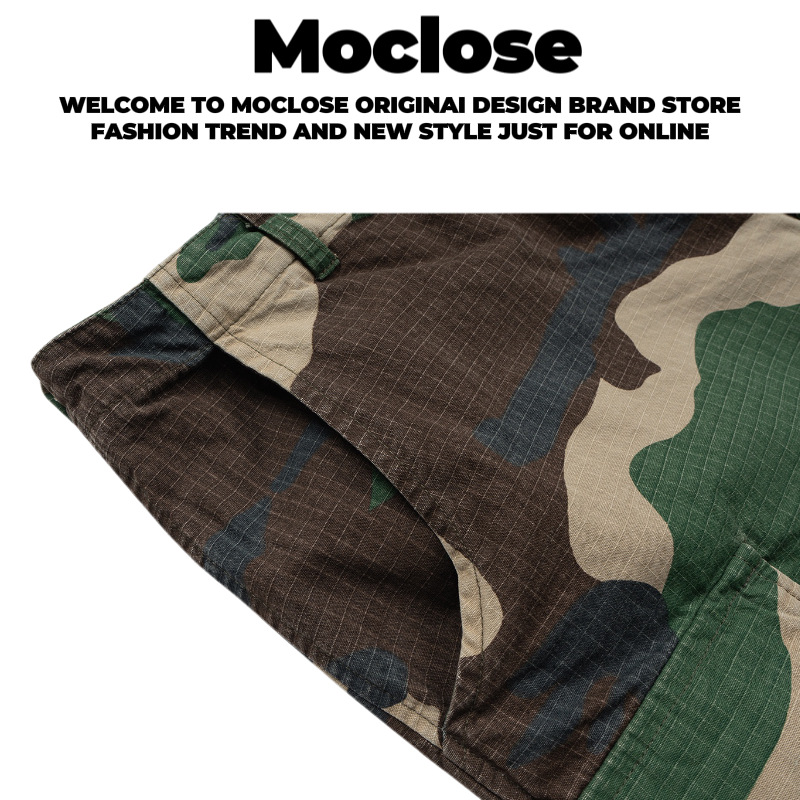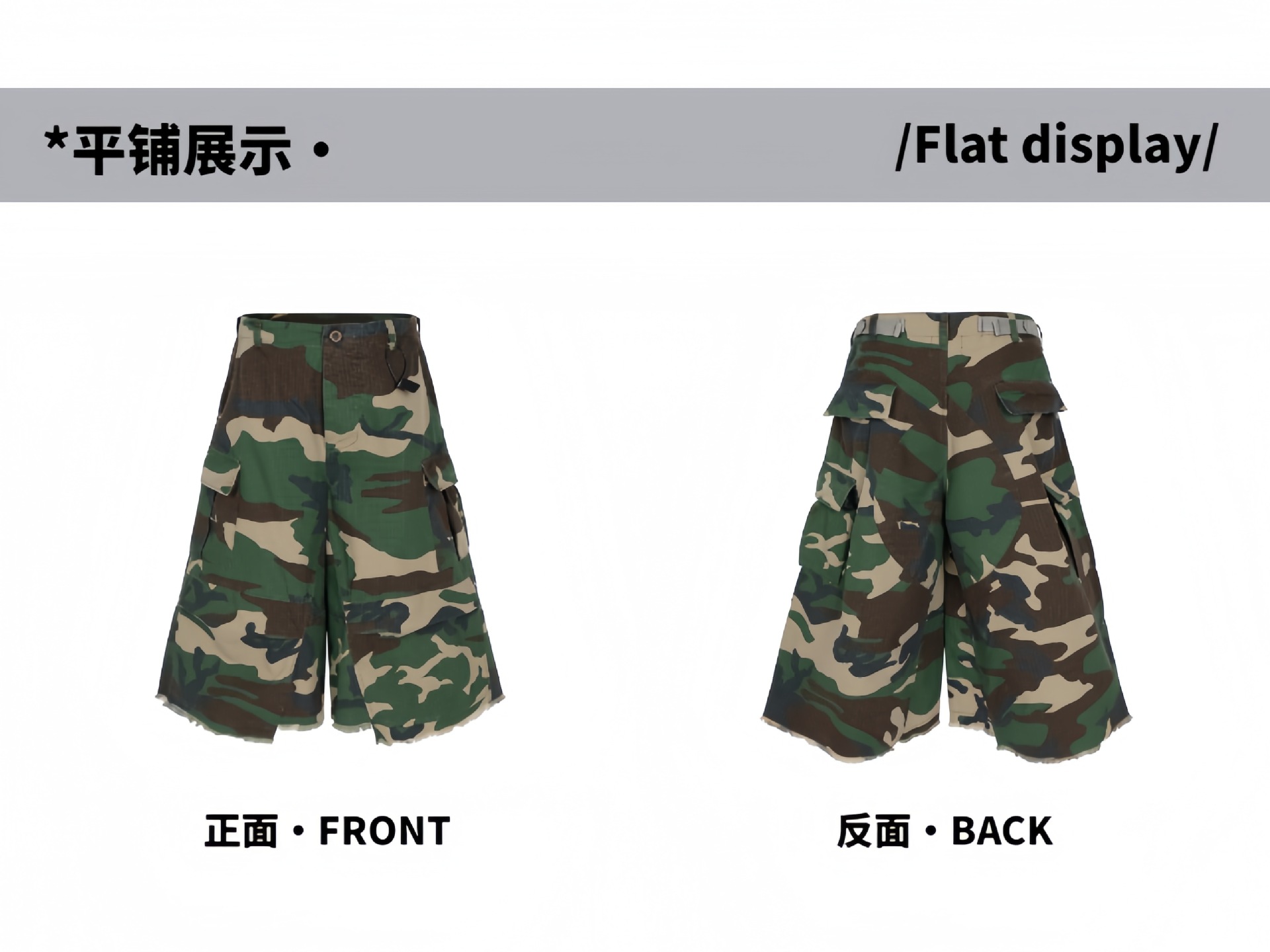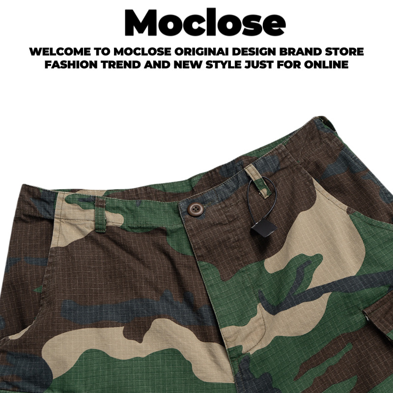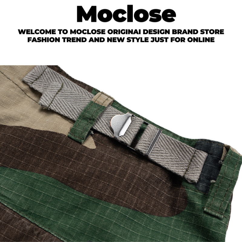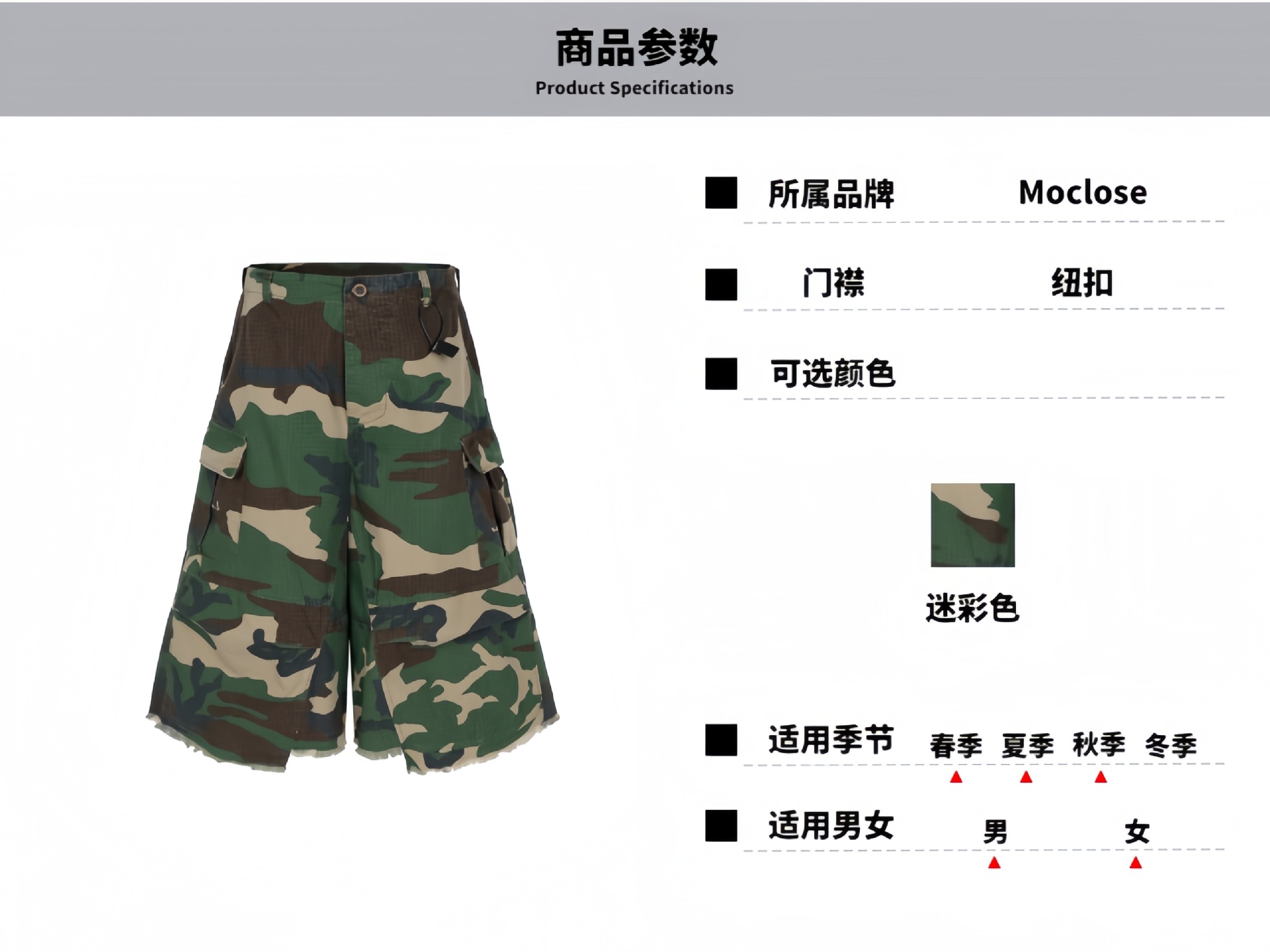 Moclose アメリカンストリート 春夏 カジュアル 迷彩 ダメージ加工 ローエッジシルエット メンズ レディース ゆったり ワークウェア クロップドショーツ