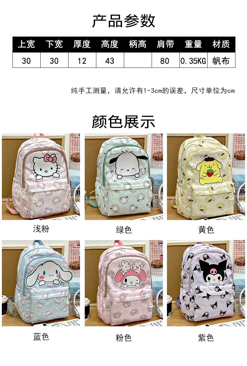 新款卡通三丽鸥可爱双肩包印花书包护脊防水儿童书包大容量学生书