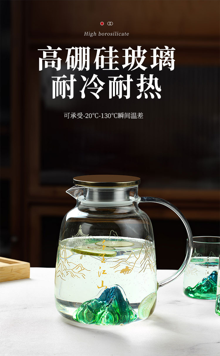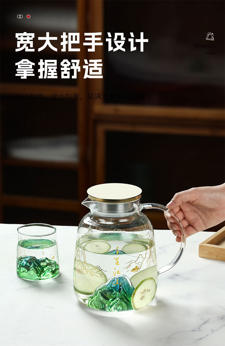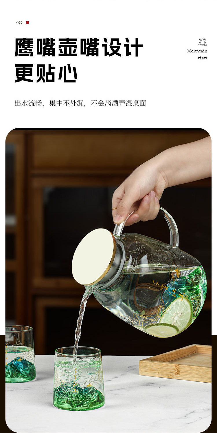 観山杯冷水ポットセット高颜値家庭用大容量高ホウ素シリコン冷水ポットジュースポット卸売り