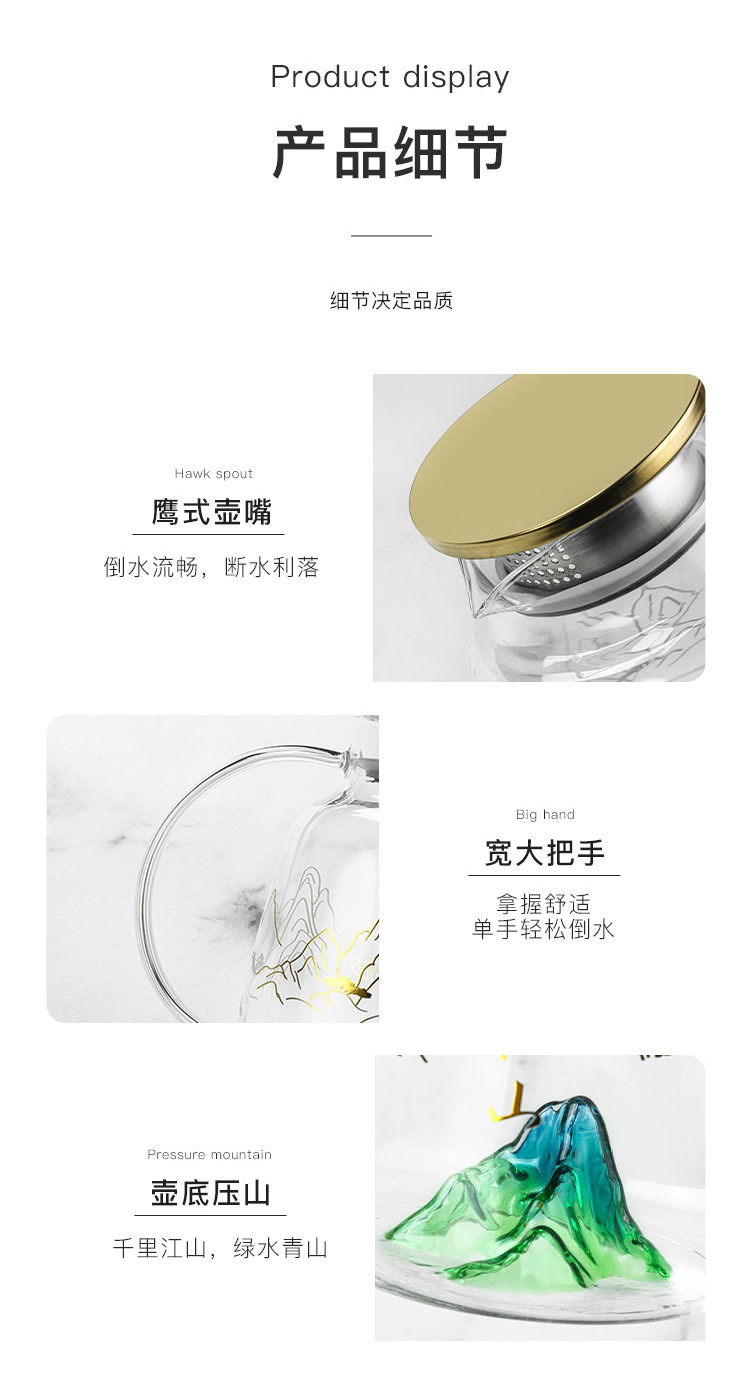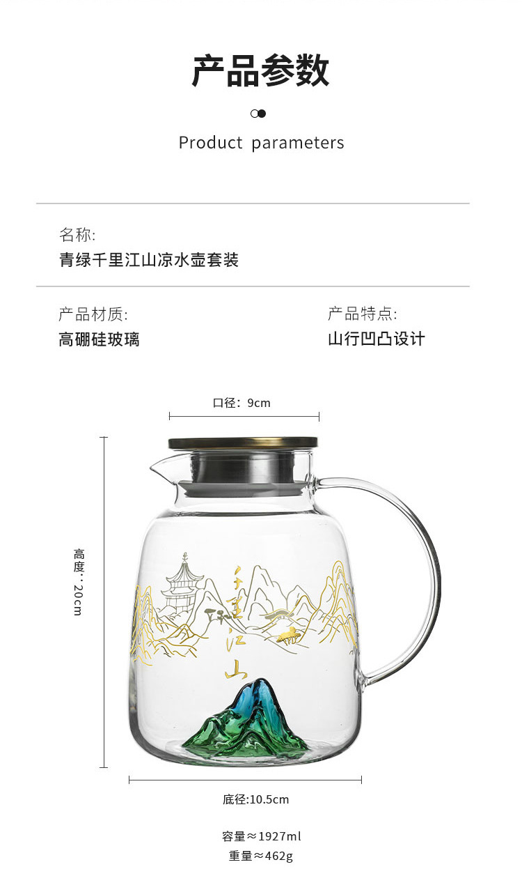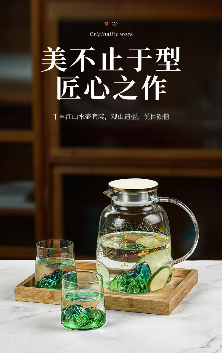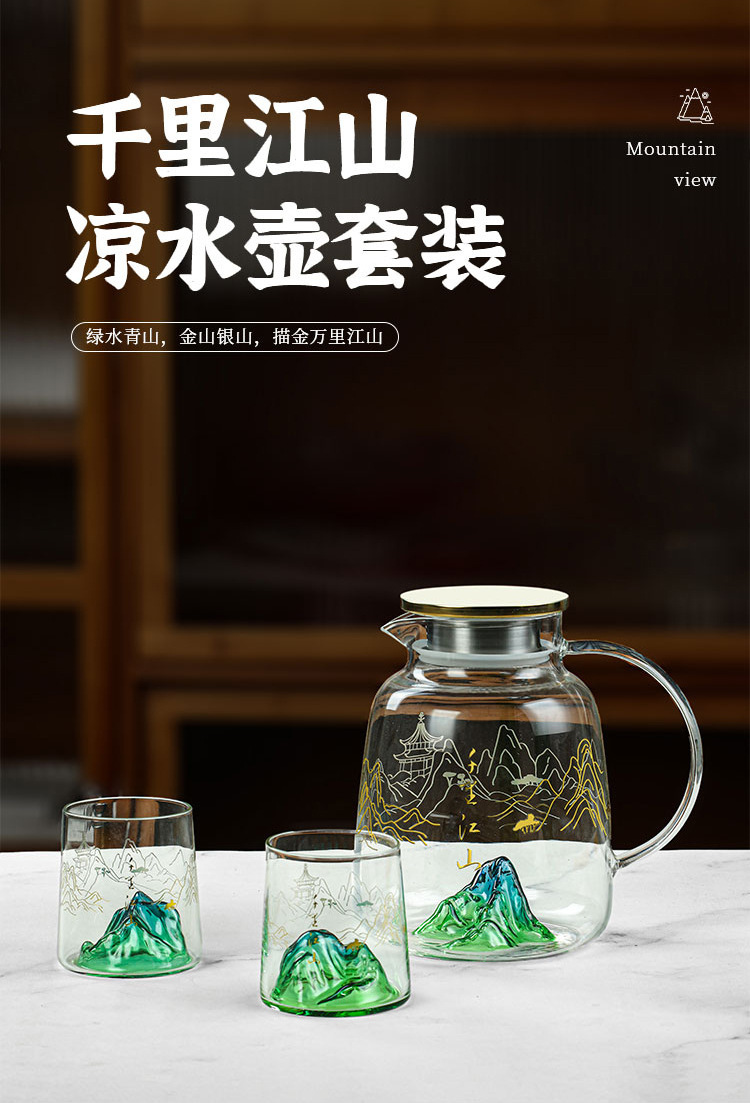 観山杯冷水ポットセット高颜値家庭用大容量高ホウ素シリコン冷水ポットジュースポット卸売り