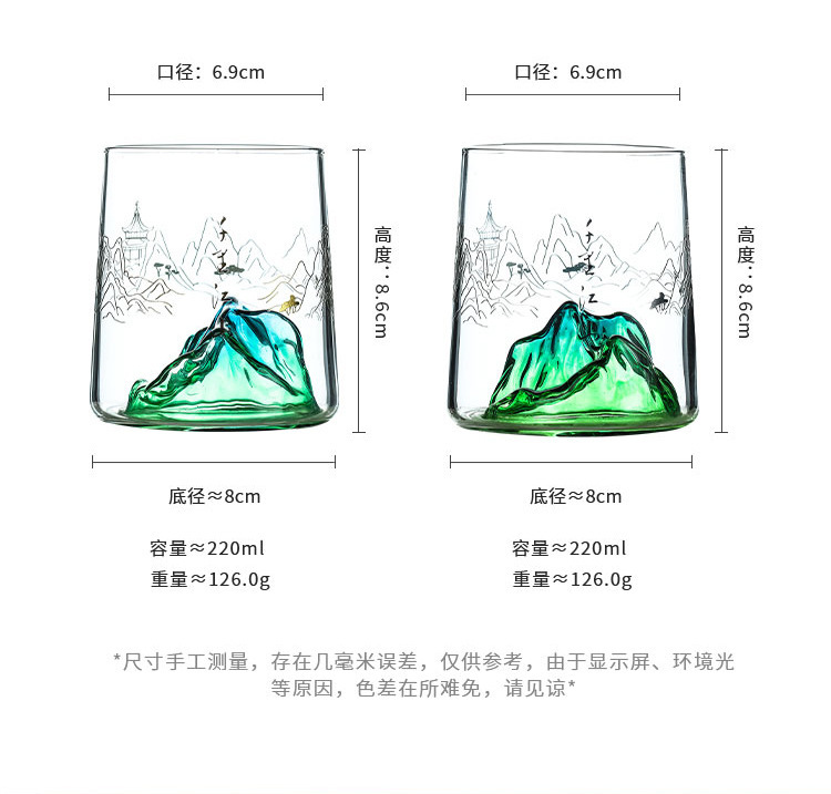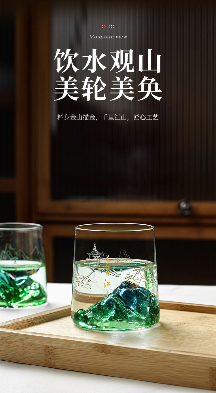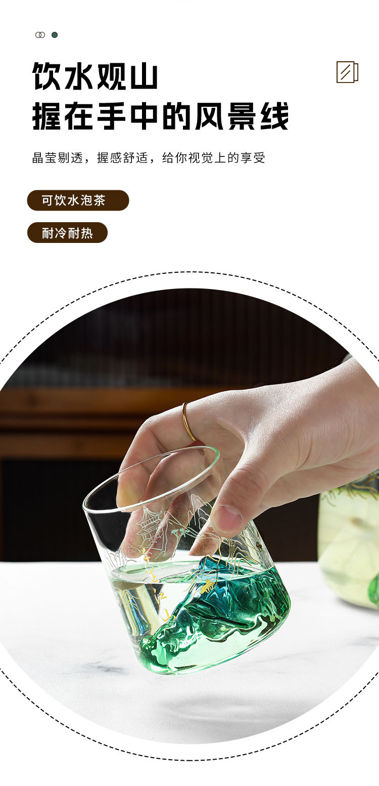 日本のクリエイティブ富士山カップ江戸ガラスギフトボックス雪山カップカラフルな木箱ウイスキーカップ工場直販