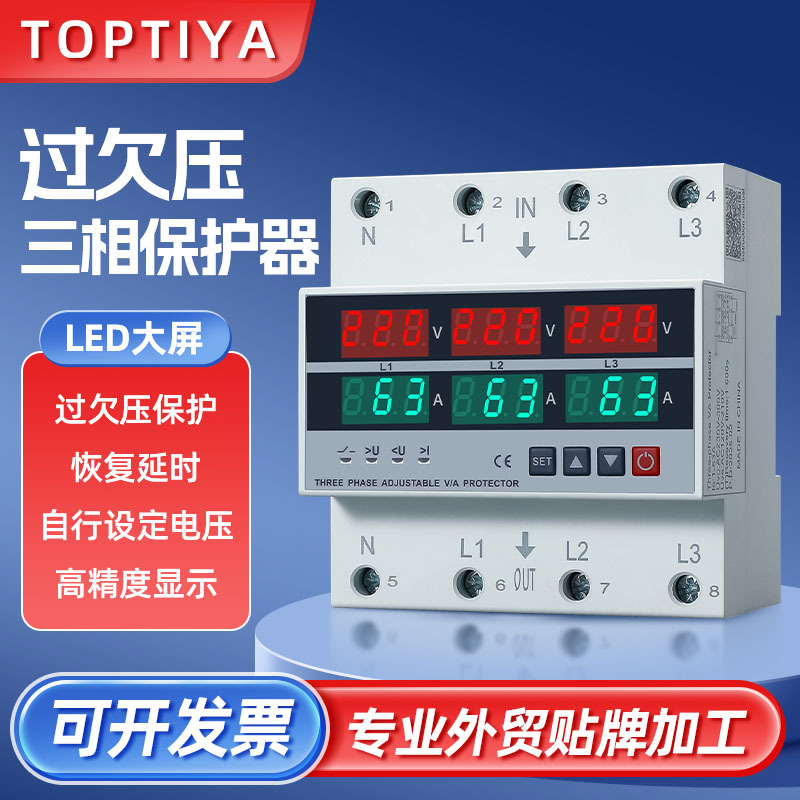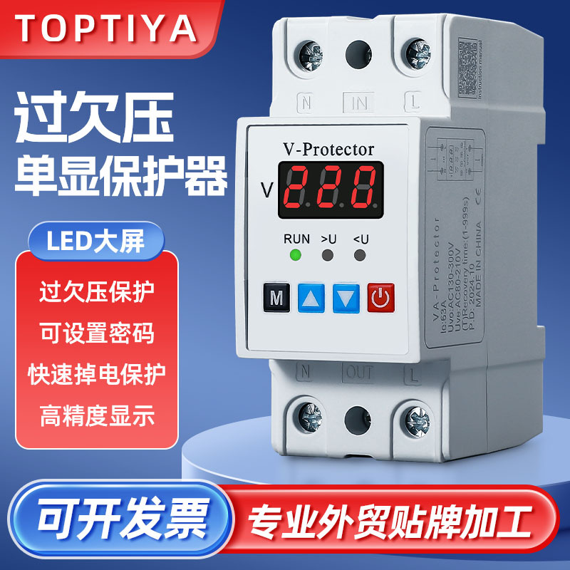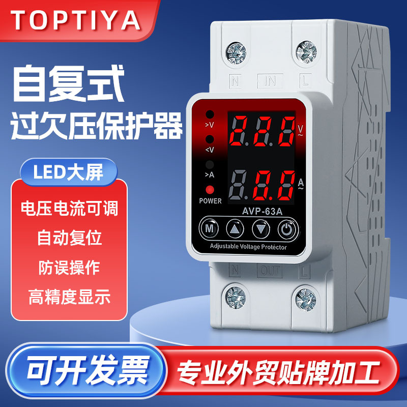 自复式过欠压电流保护器可调智能双显三显六显自动复位40A63A100A