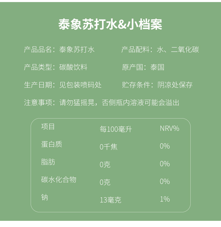 タイ輸入原味325ml * 24本昌泰象牌ソーダ飲料0糖0脂0カード無糖飲料