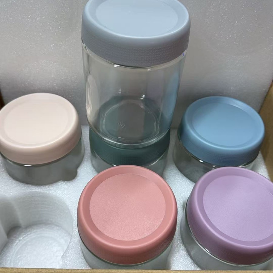 跨境亚马逊玻璃密封玻璃储物罐辅食分装瓶隔离燕麦杯酸奶罐储物罐