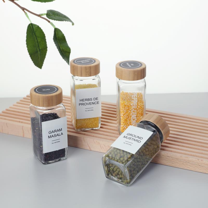 120ml竹の木の蓋の調味料の瓶の4オンスの角の瓶の調味料の缶のクロスボーダーのアマゾンのよく売れている香料の瓶は穴があって粉の瓶を撒きます。
