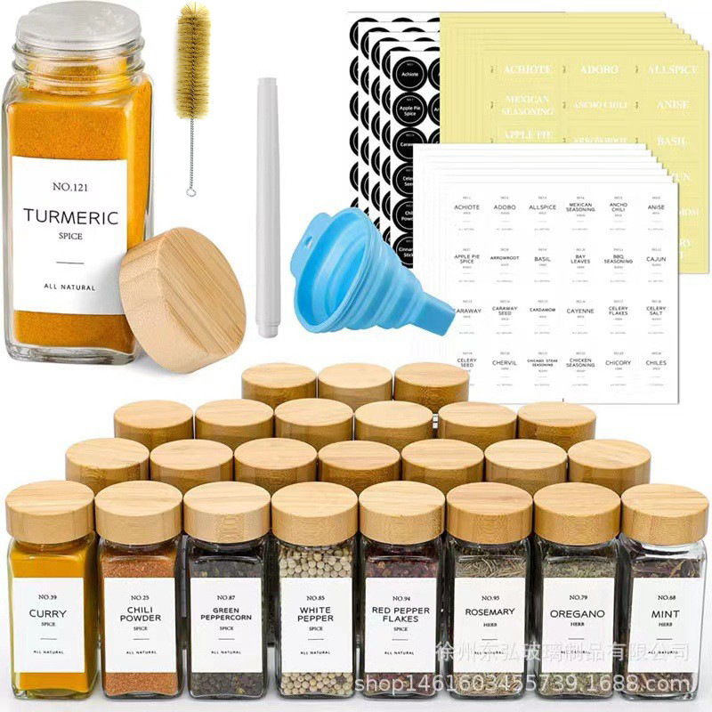 120ml竹木蓋調味料瓶ガラス角瓶アマゾンクロスボーダー人気分注瓶台所用品調味料缶