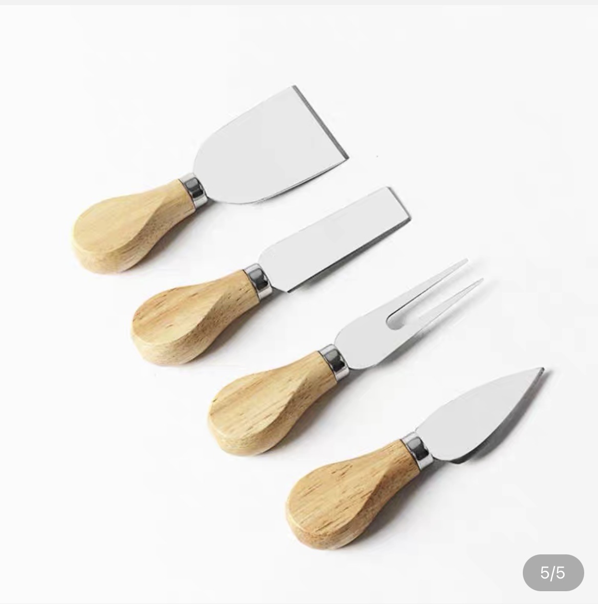 チーズナイフ5点セット ステンレスハンドル チーズスパチュラ チーズナイフ チーズトゥースナイフ 木製ロングハンドル クリームナイフ