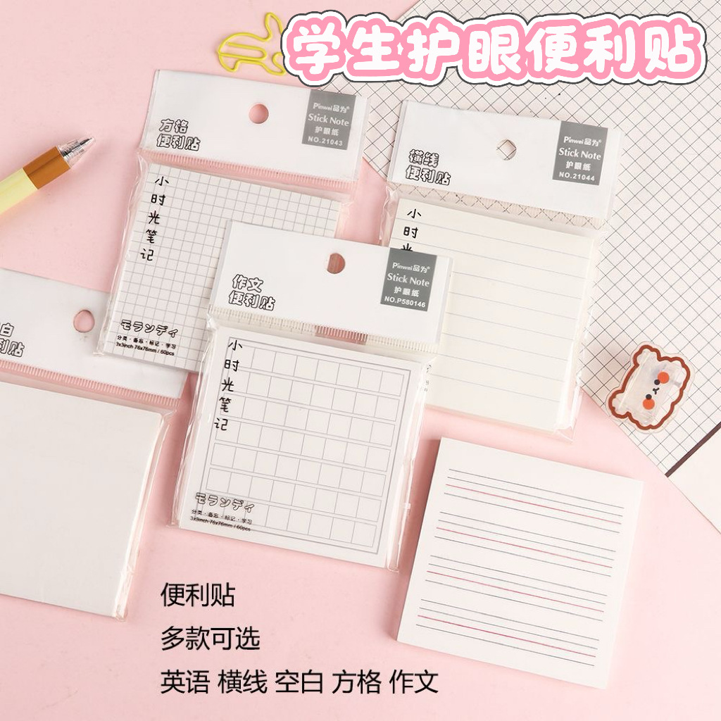品为学生护眼色便利贴小时光简约笔记贴英语横线空白方格记事贴