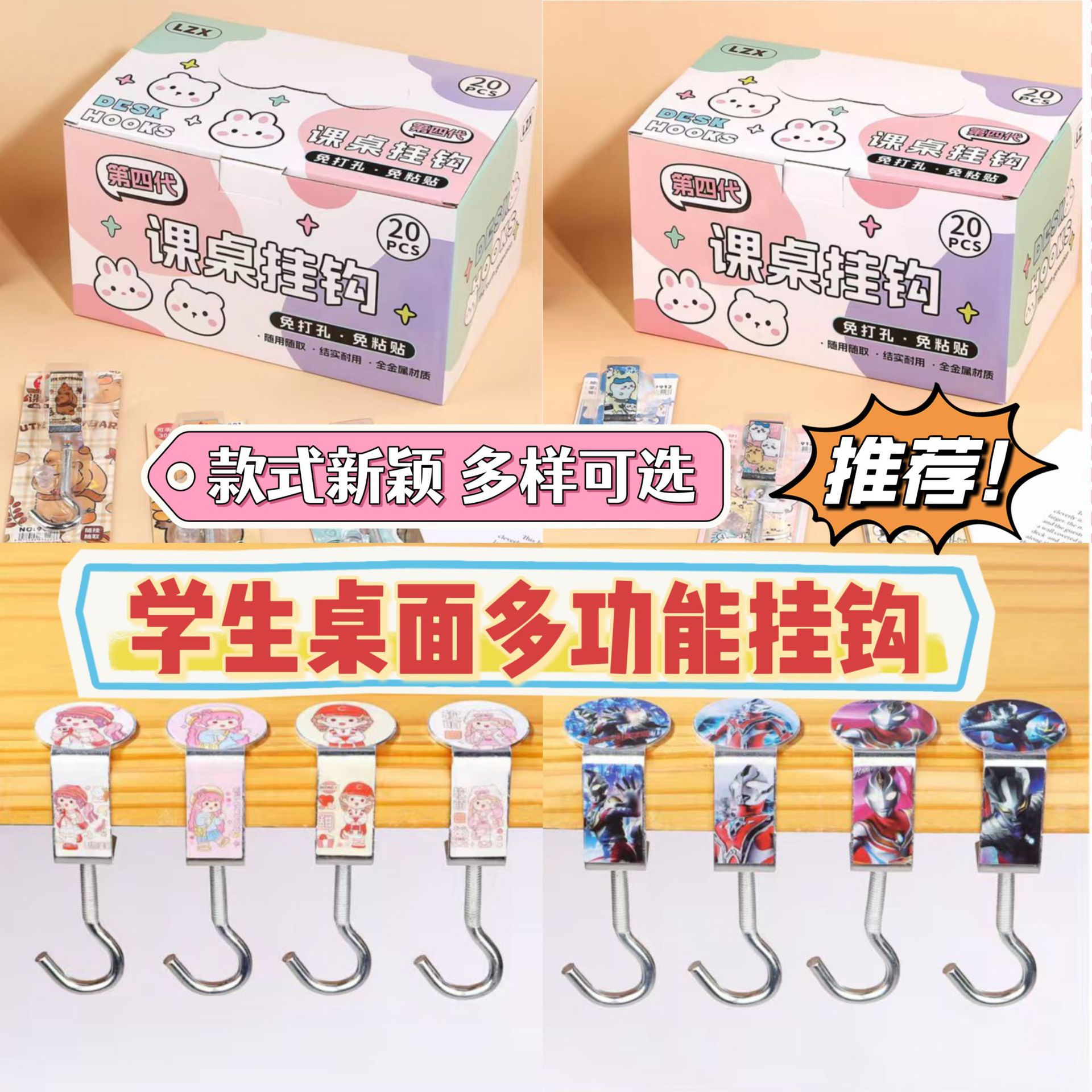 第三世代ランドセルフッククロミカピバラ学生調節可能なデスクオフィスバッグフック卸売