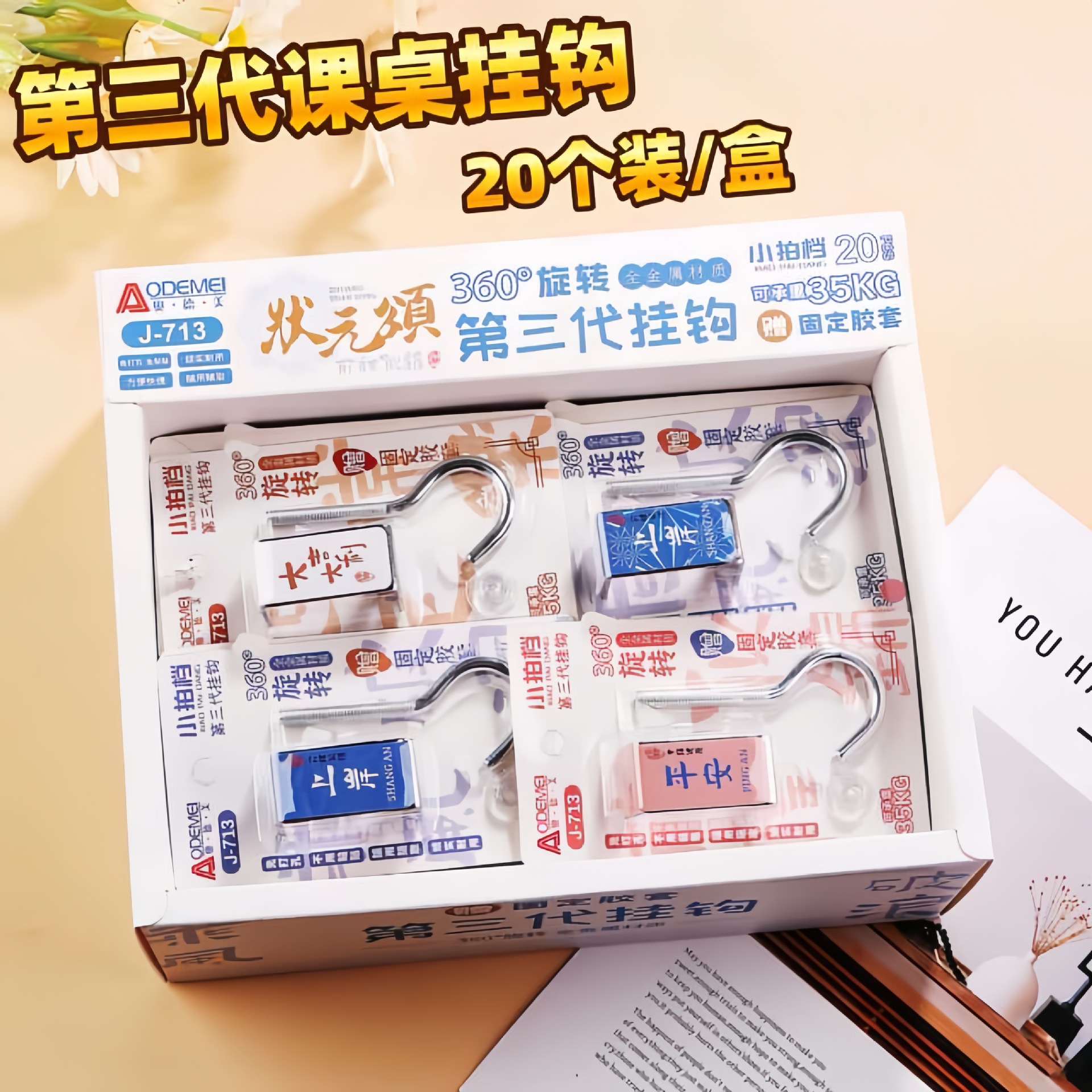 卸売り学生のかばんフック卓面は取り外し可能で、移動可能なフック机の机のそばにフックを収納することができる