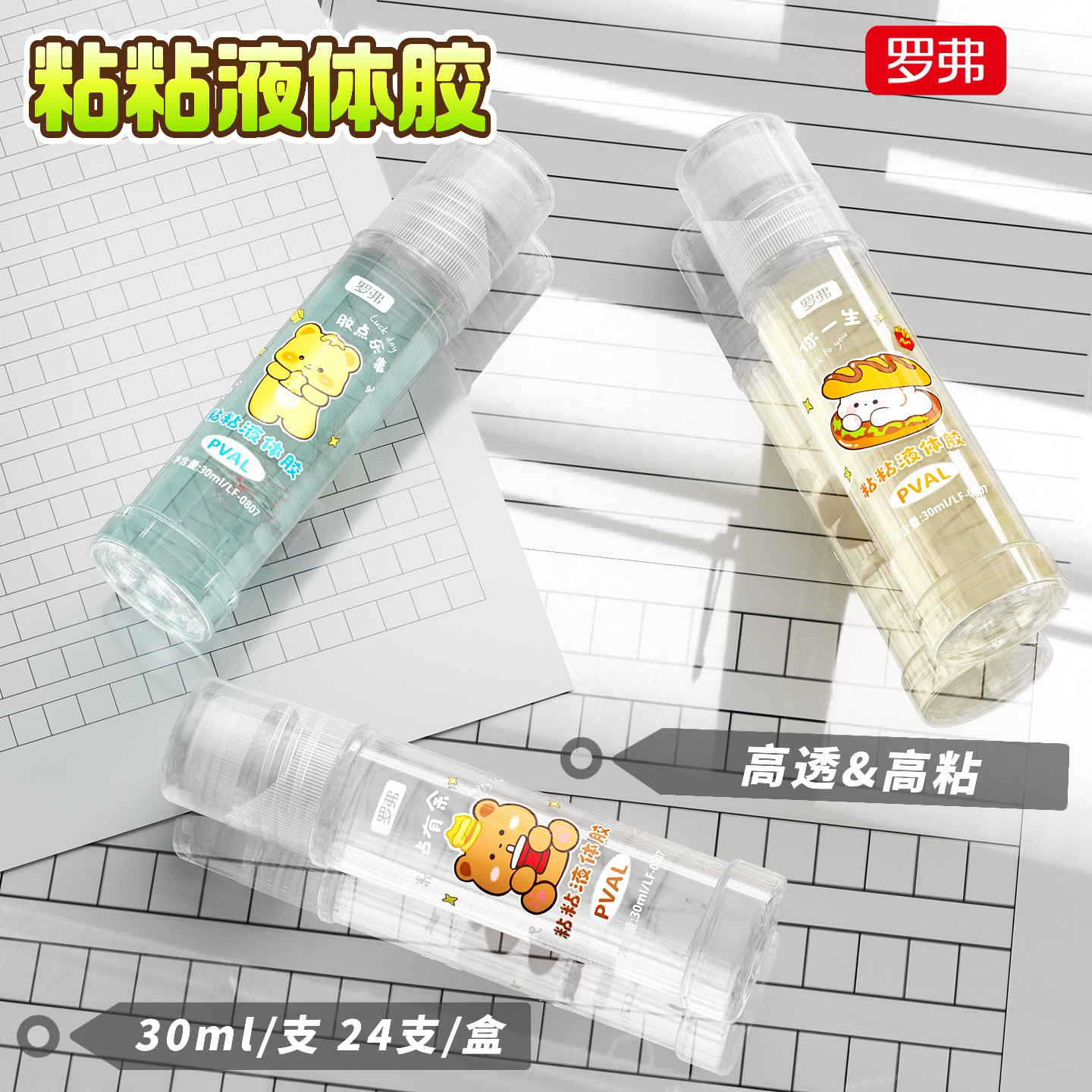 罗弗卡通小熊30mI液体胶学生儿童DIY手工粘粘液体胶办公透明胶水